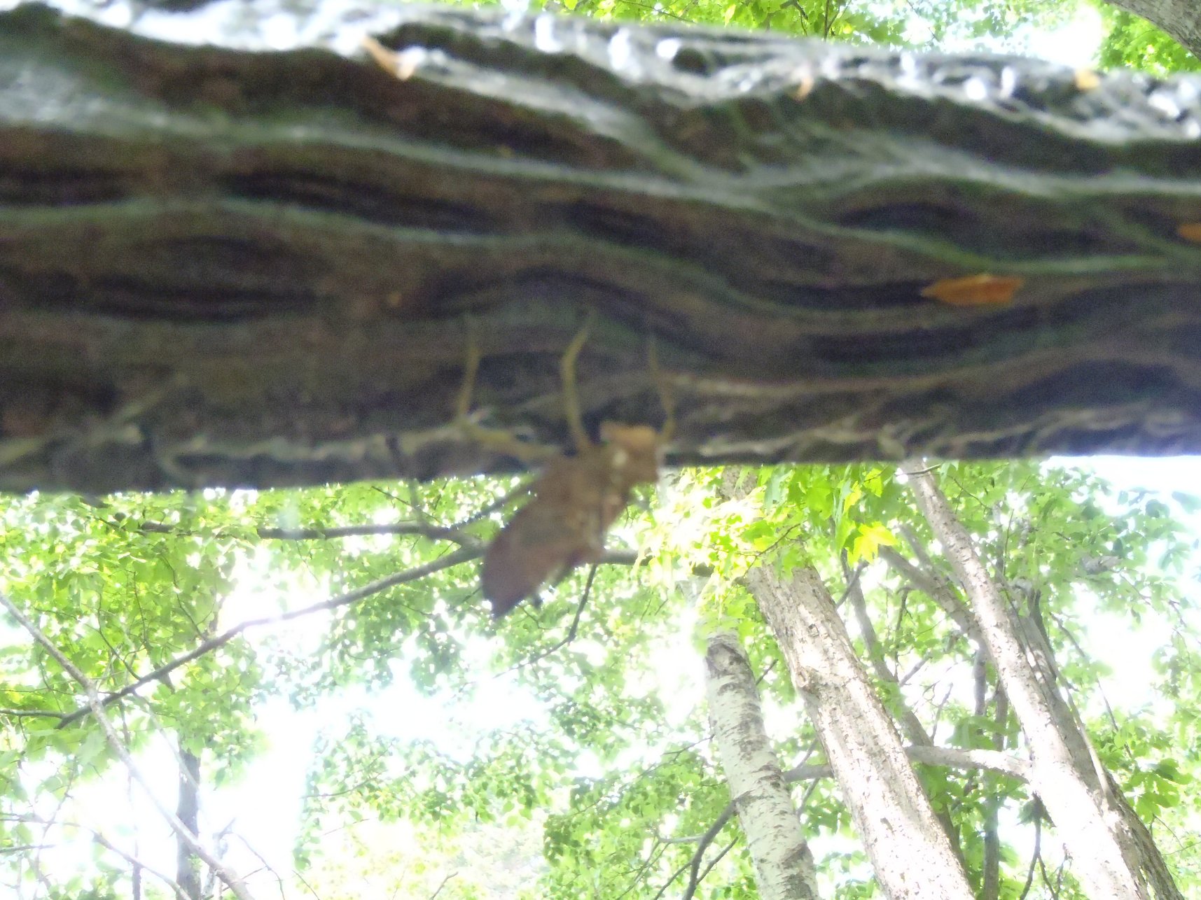 6月に入り、ホンサナエ・モイワサナエ・ニホンカワトンボ・シオヤトンボ と羽化ラッシュを迎えていますが、今日はエゾコヤマトンボの羽化殻を 見つけました。 足が長い特徴的な形をしたヤゴで、横木に逆さについて羽化をするそうです。 水源池沿いの木柵に注目していると、結構見つかりますよ。
