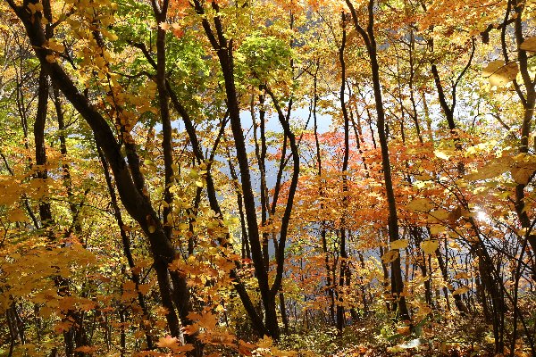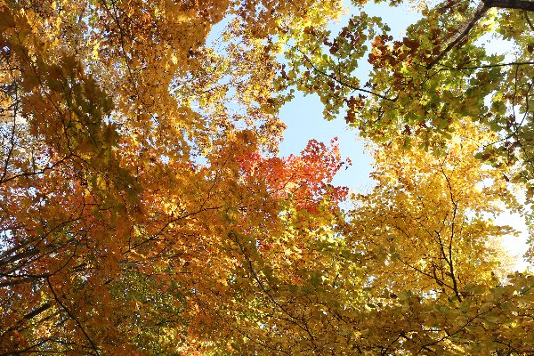 木々の葉の色づき、今日はまだ緑の葉が意外と目立ち、今年は全体的に色づきが遅いように感じられます。