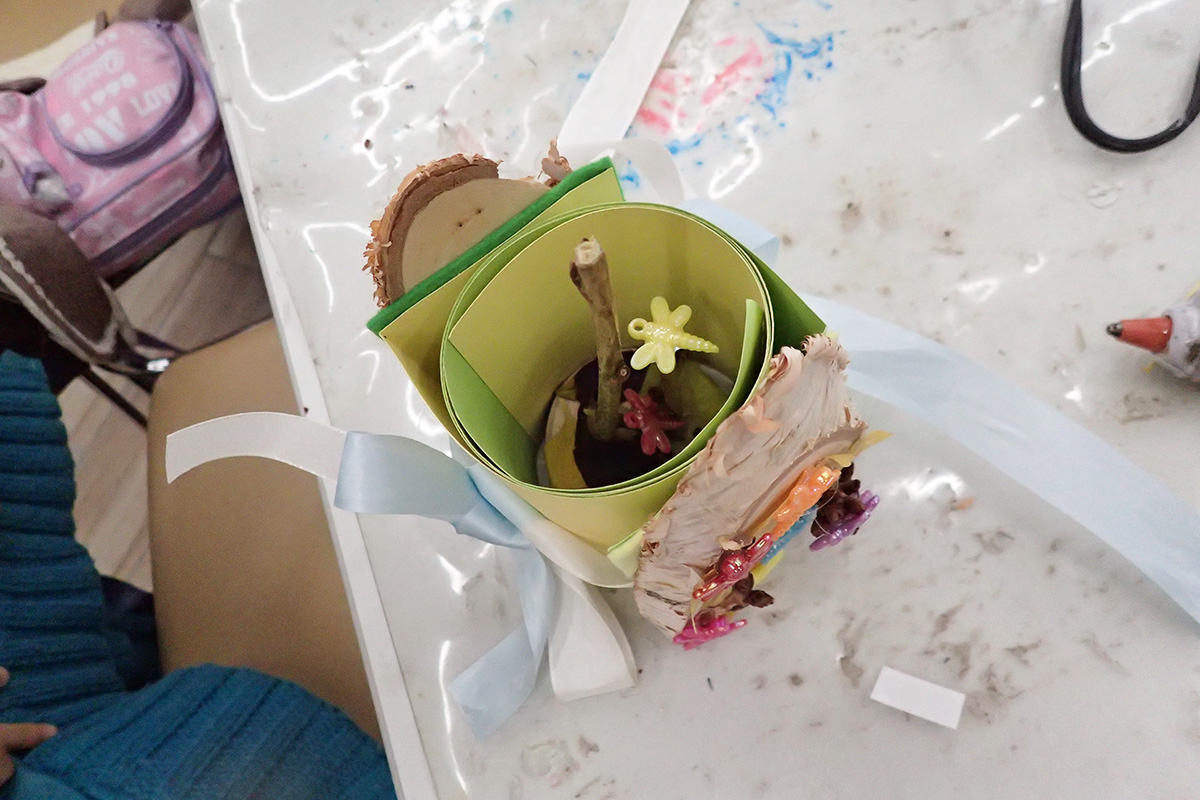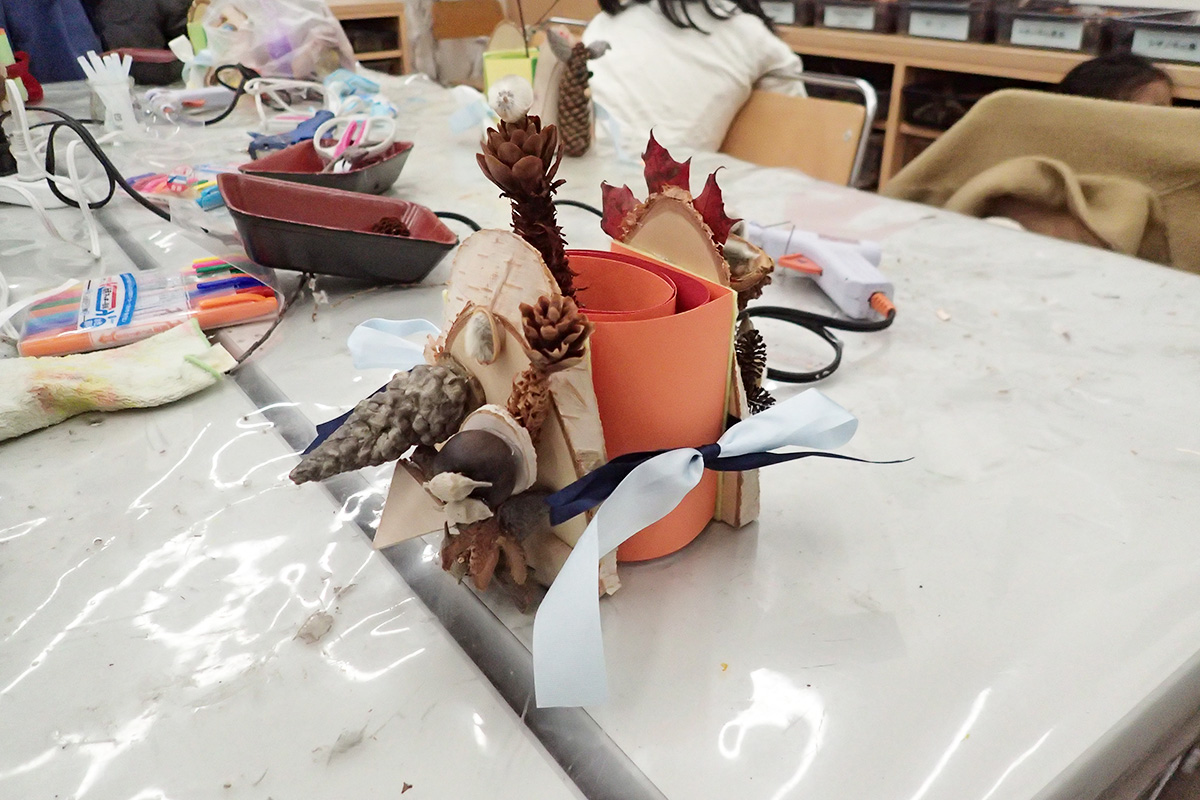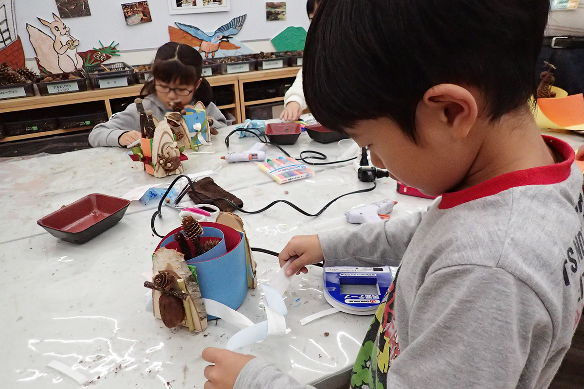 ビーズを持ち込んで貼った子や自然素材のみでつくることにこだわる子、