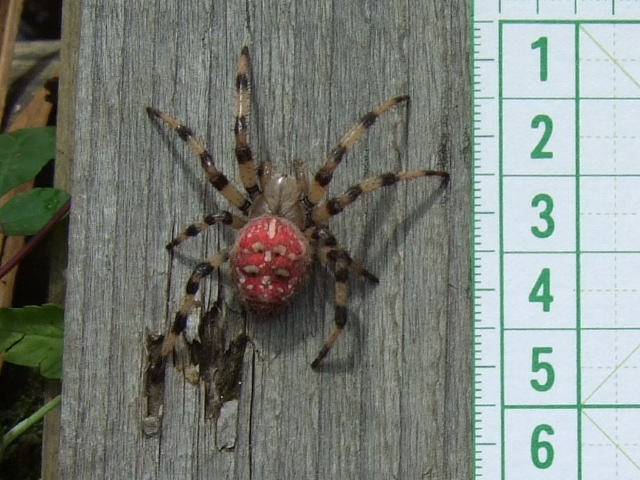 このクモは「アカオニグモ」といい、北海道や本州以南の高地に生息しているそうです。