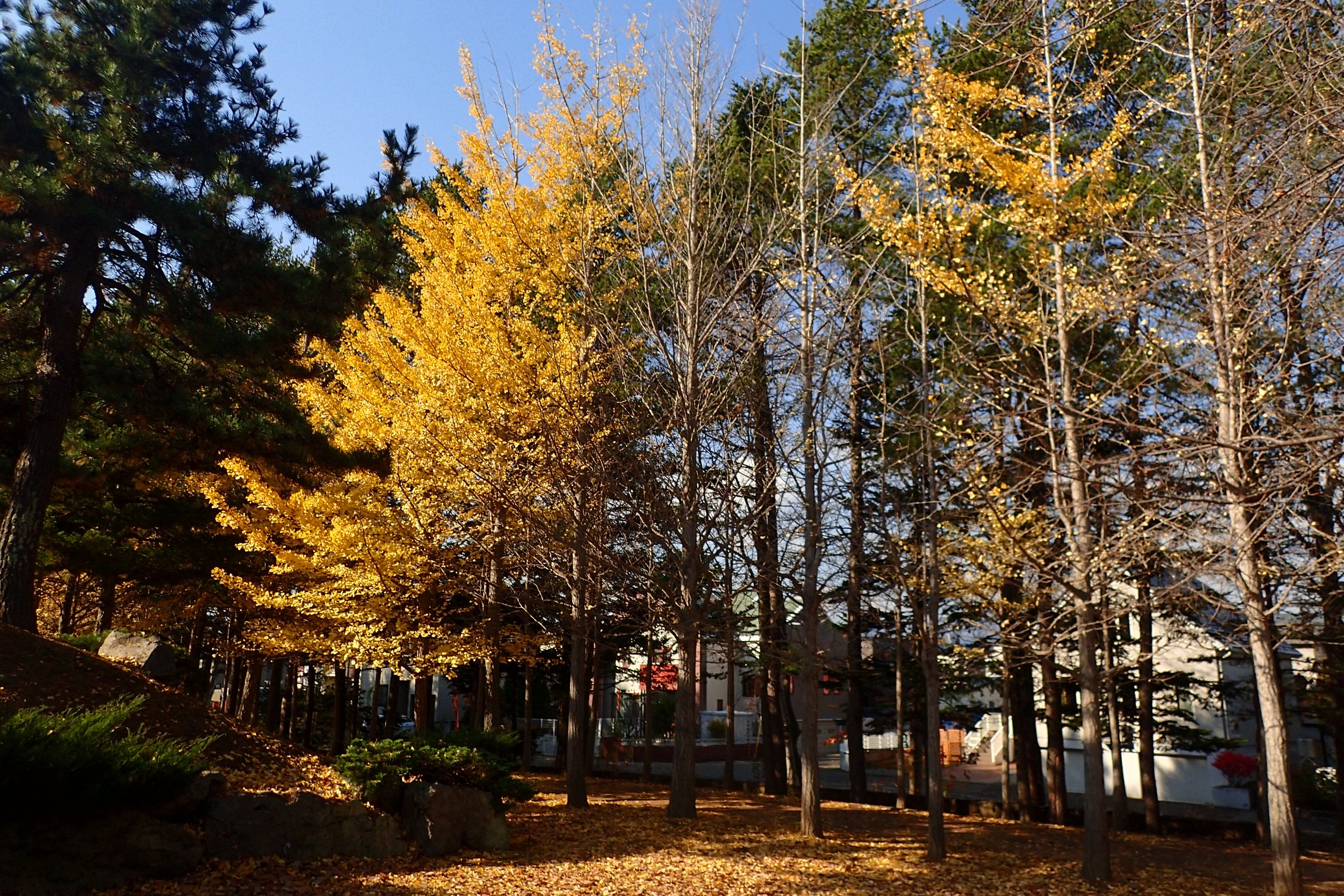 イタヤカエデ同様に陽射しで黄金色に輝いています。