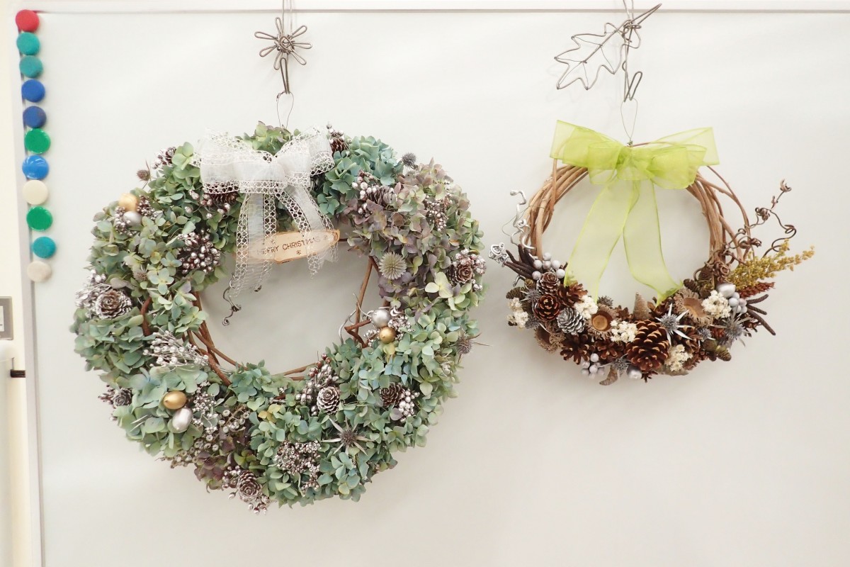 西岡公園では講師の方が作成したリースや、手作りリースキットも販売しております。