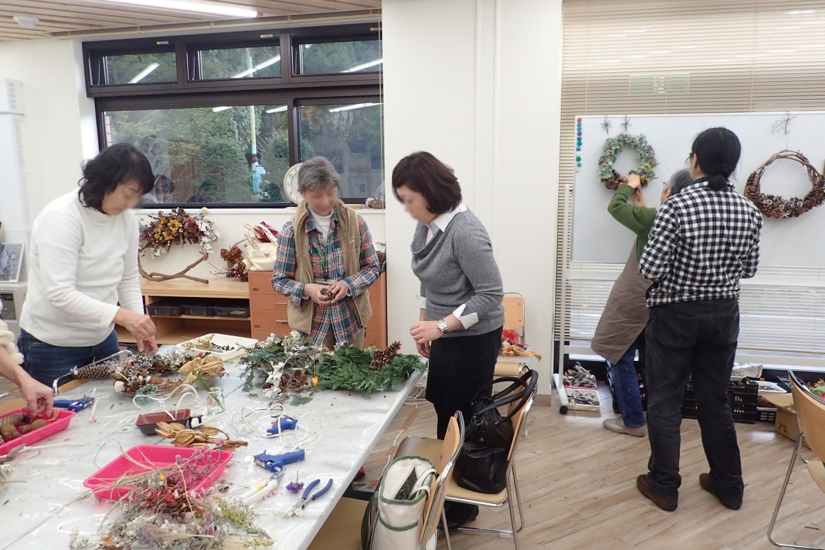 西岡公園では冬に向けて恒例のクリスマスリース講習会を開催しました。