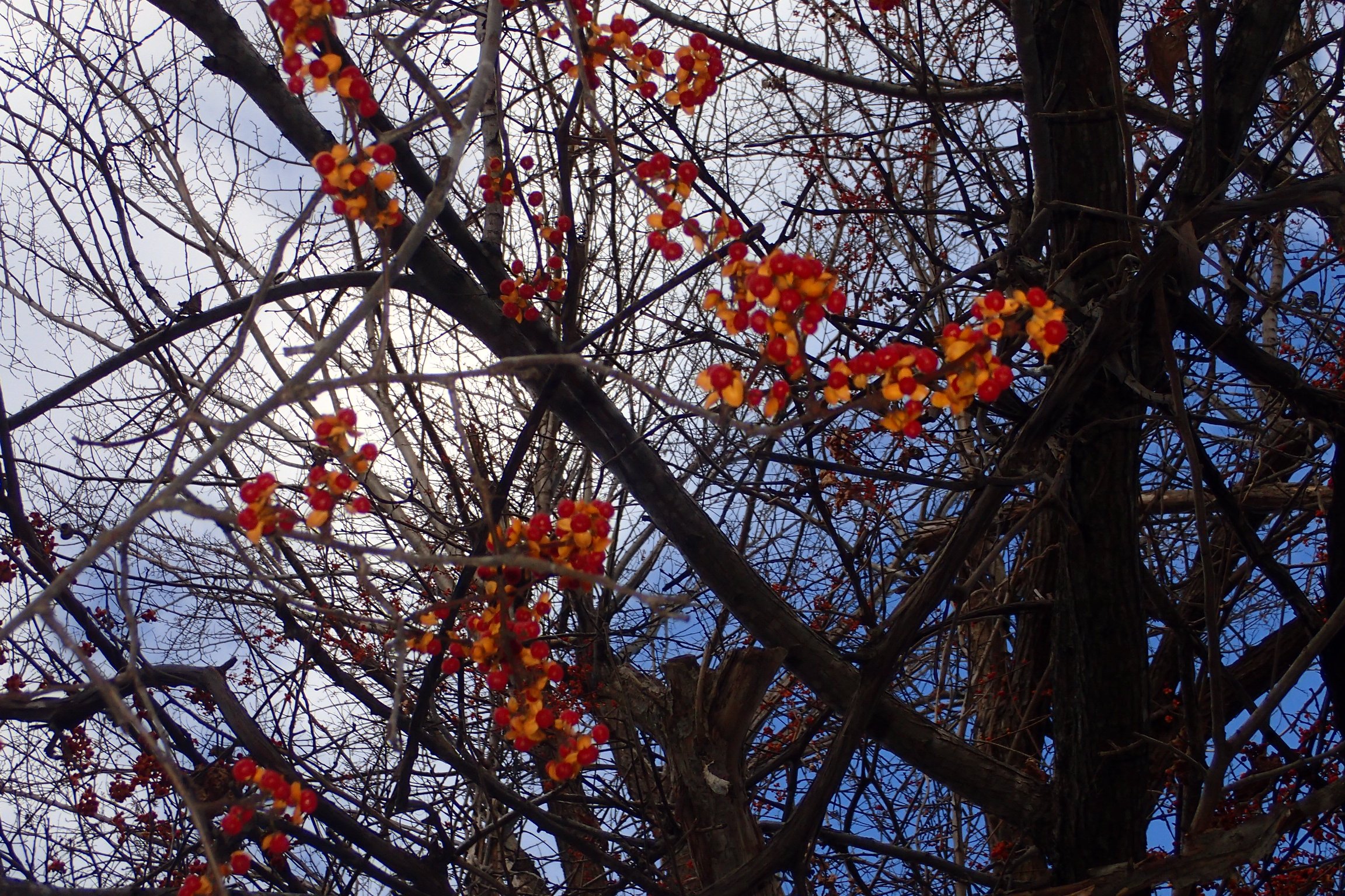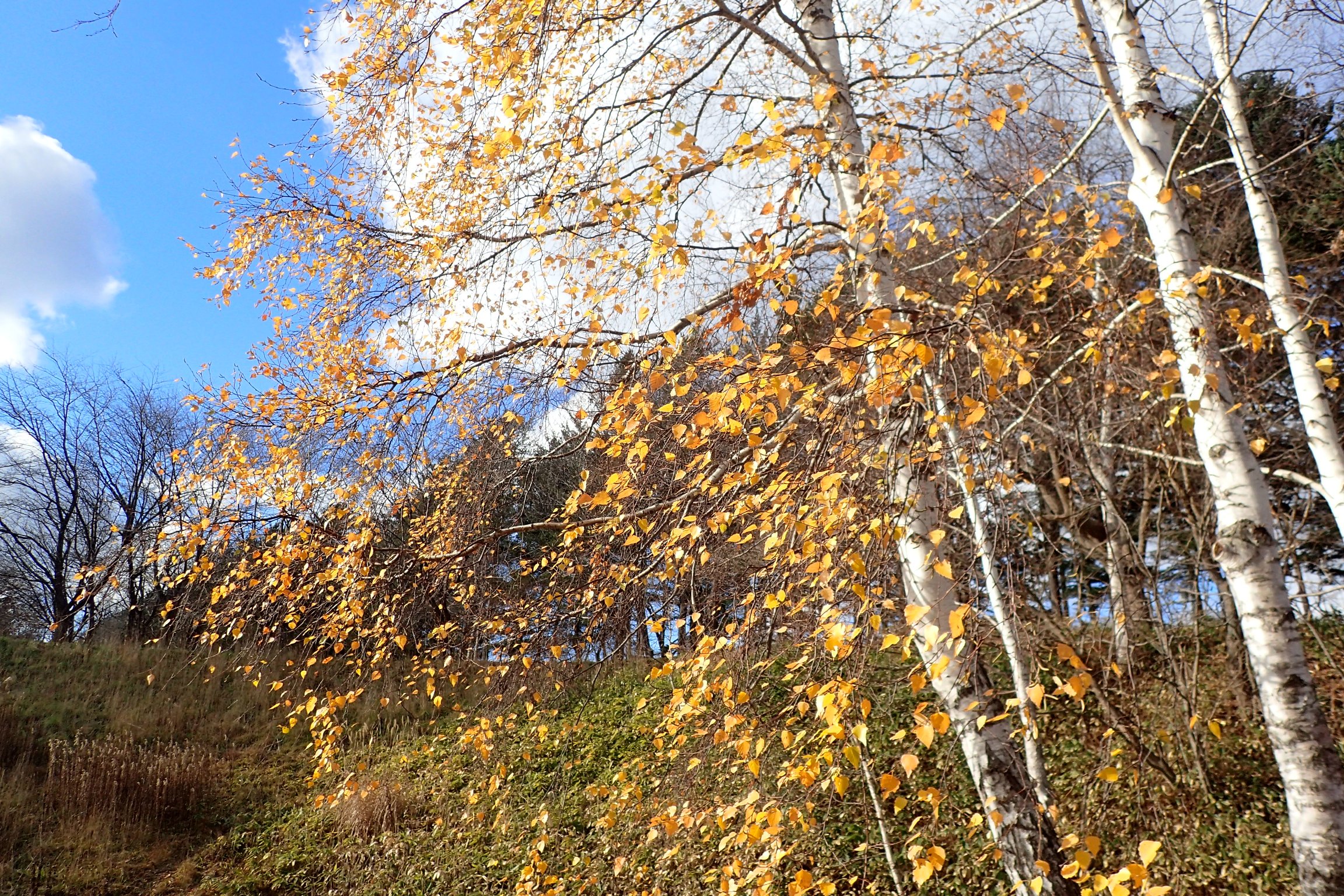 一本だけ葉がついて黄葉中ですが、少し葉が落ちはじめてきていました。