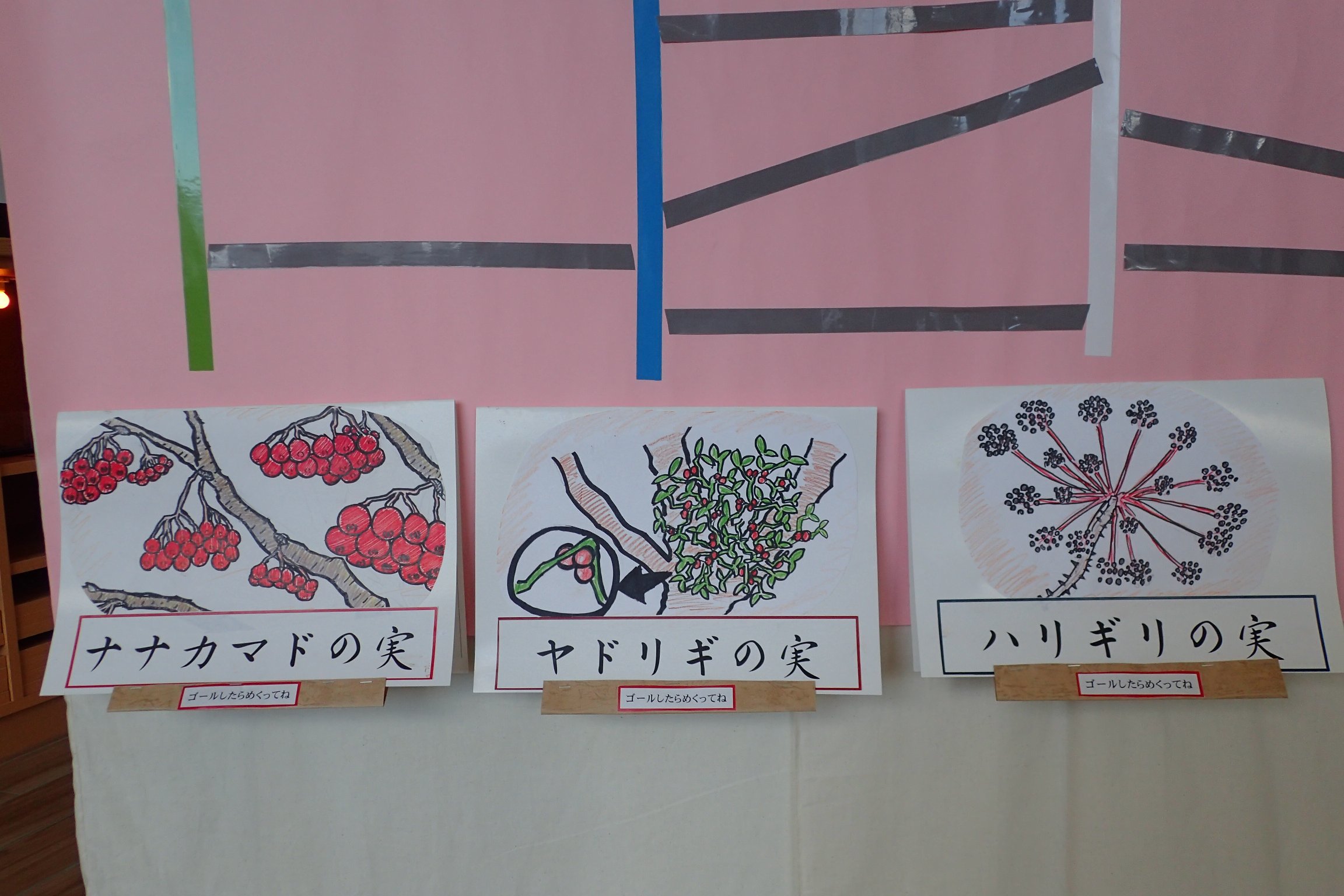 あみだくじをたどるとわかる、という展示です。