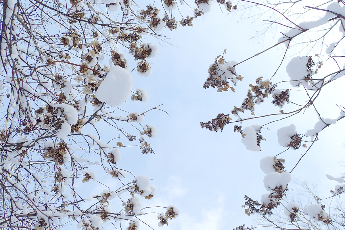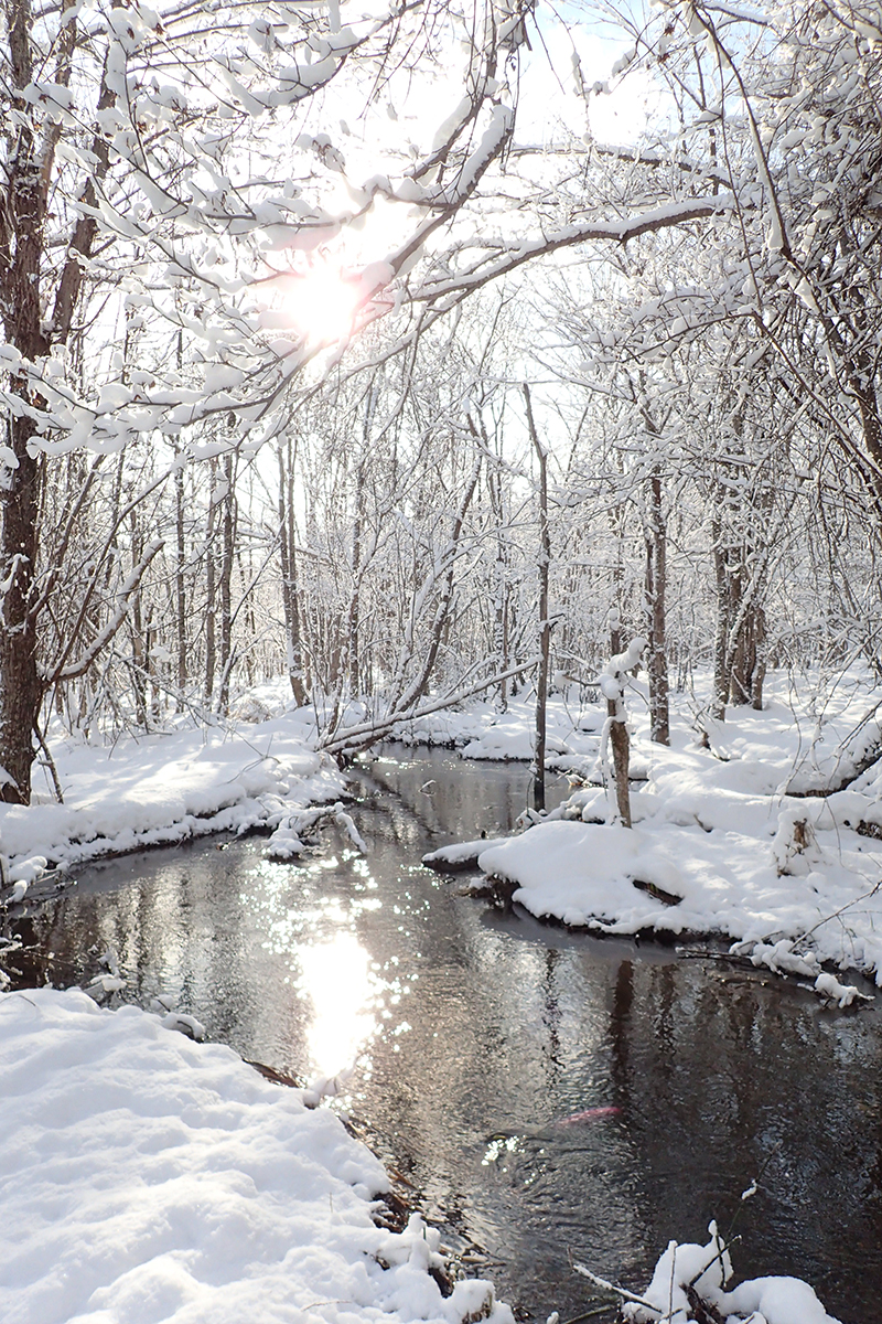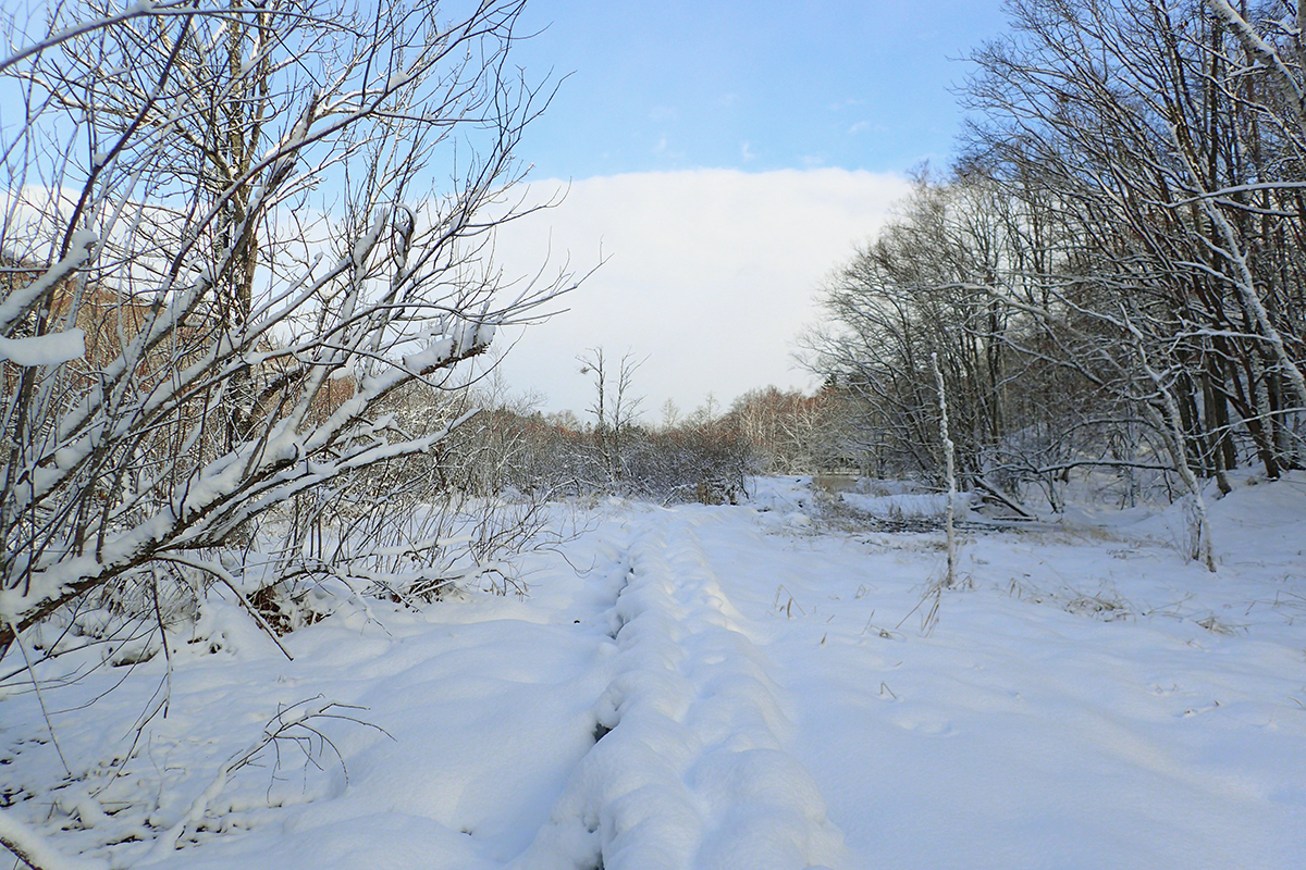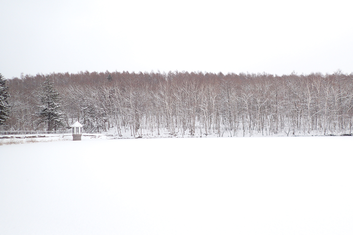 水源池の周りは雪のあとの晴れ模様できれいに照らし出されて