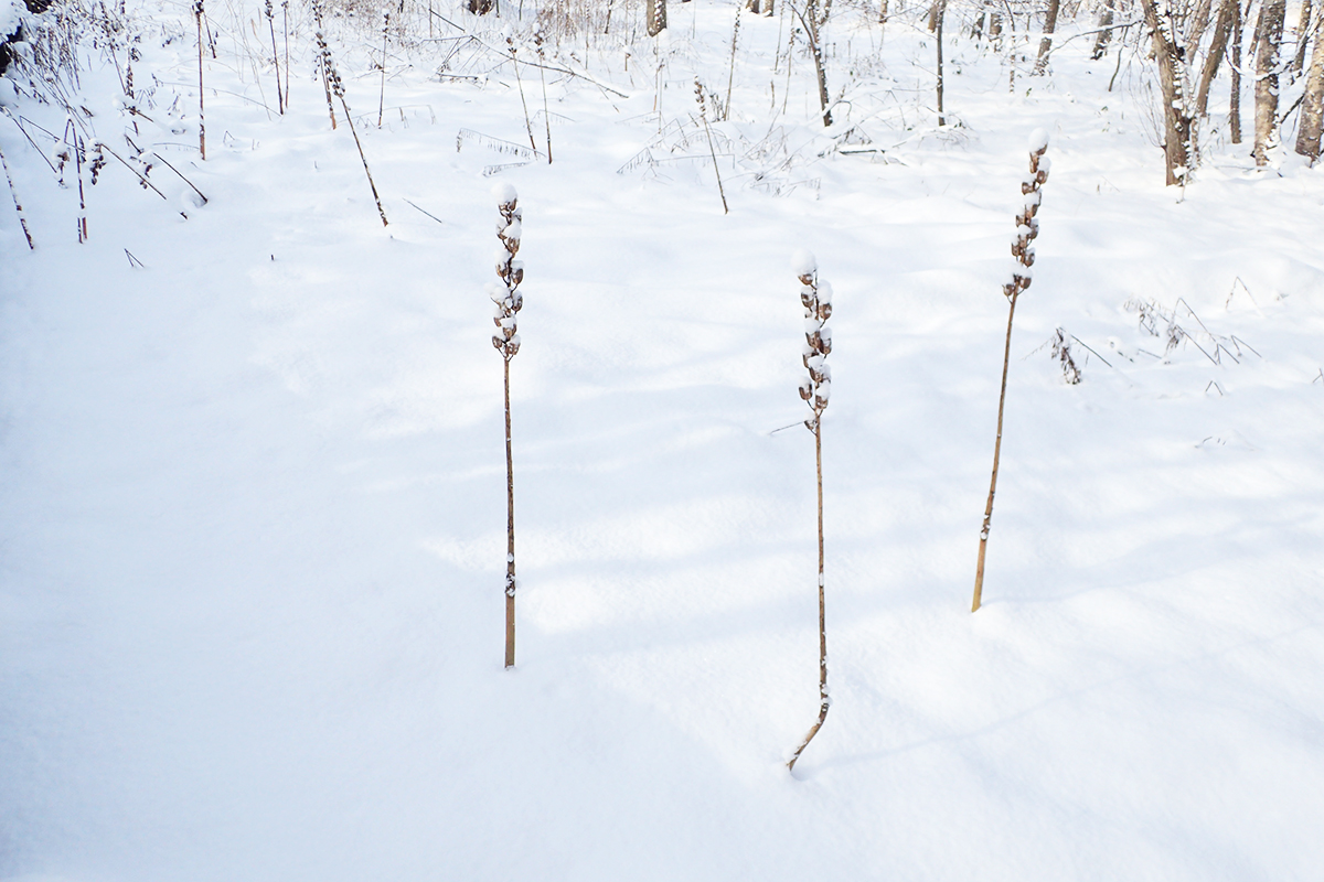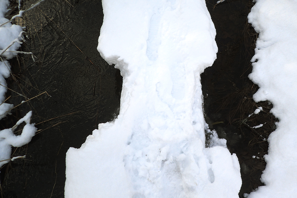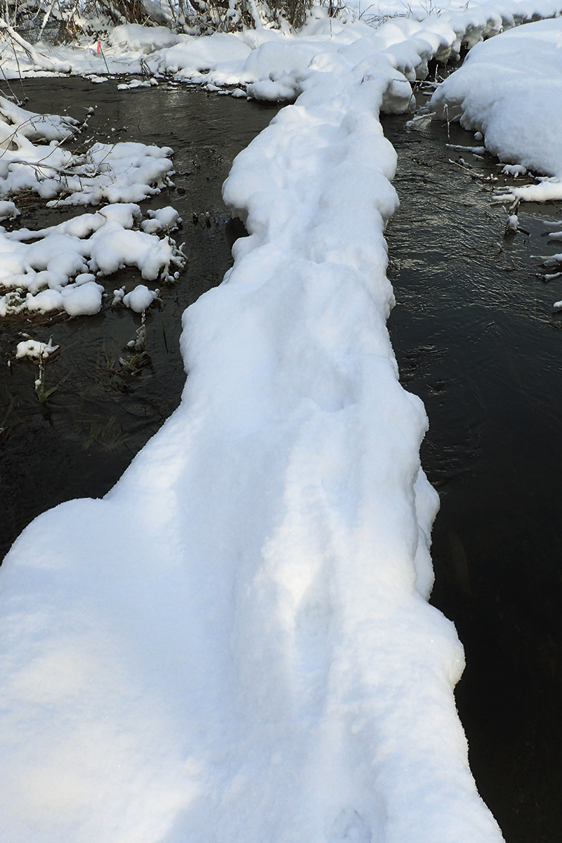雪によって実際の木道の幅の2倍くらいに膨れているだけで
