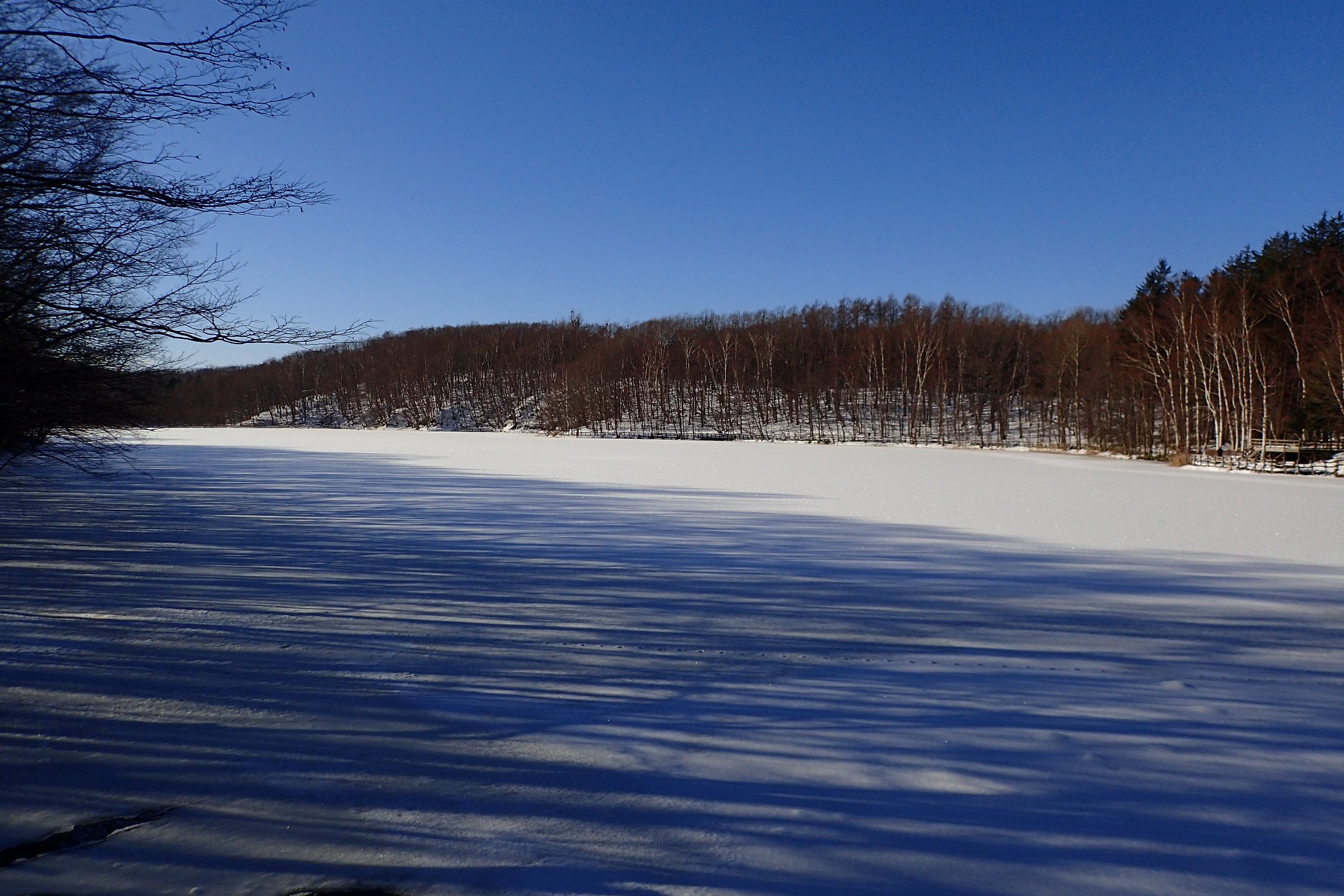 水源池も陽射しを浴びて積もった雪を、キラキラ輝かせていました。