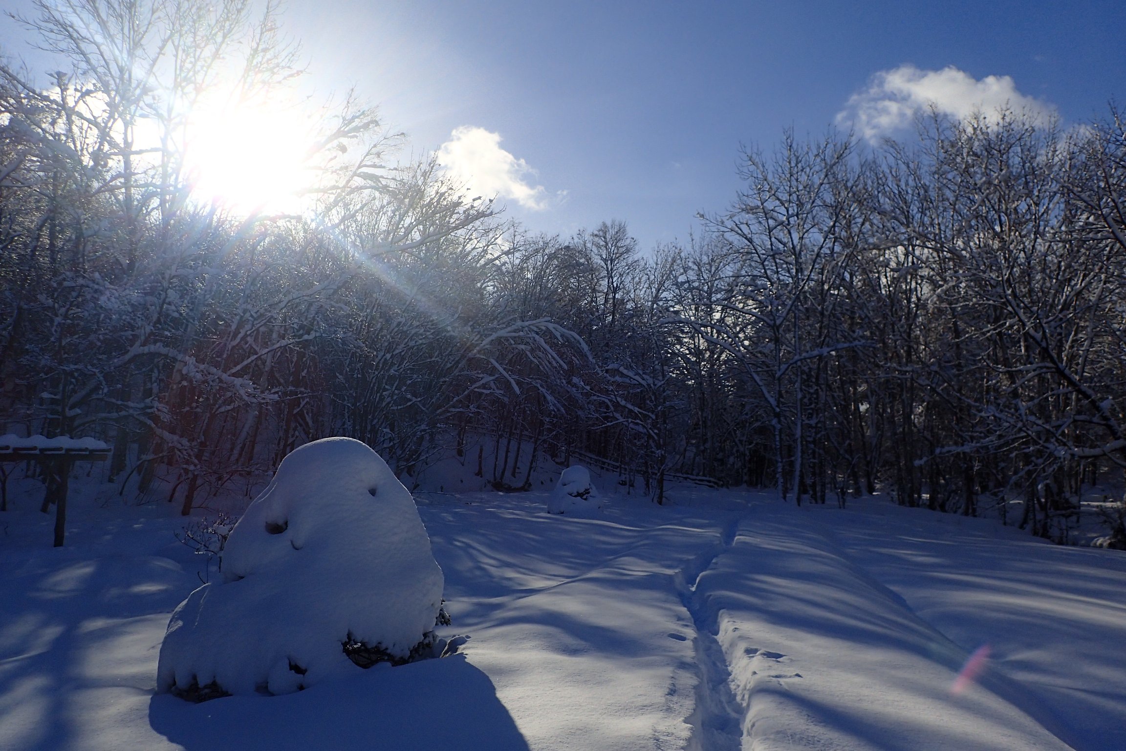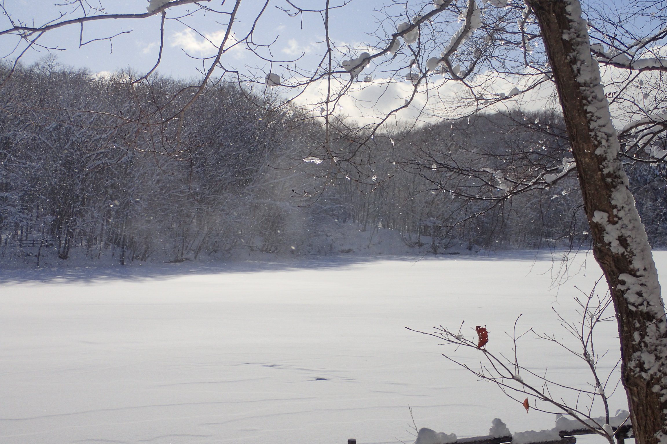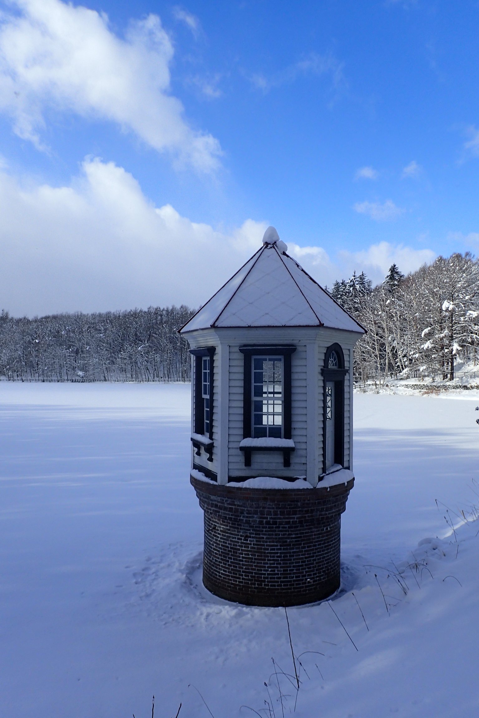 水源池も日を浴びて、雪がキラキラと輝いています。