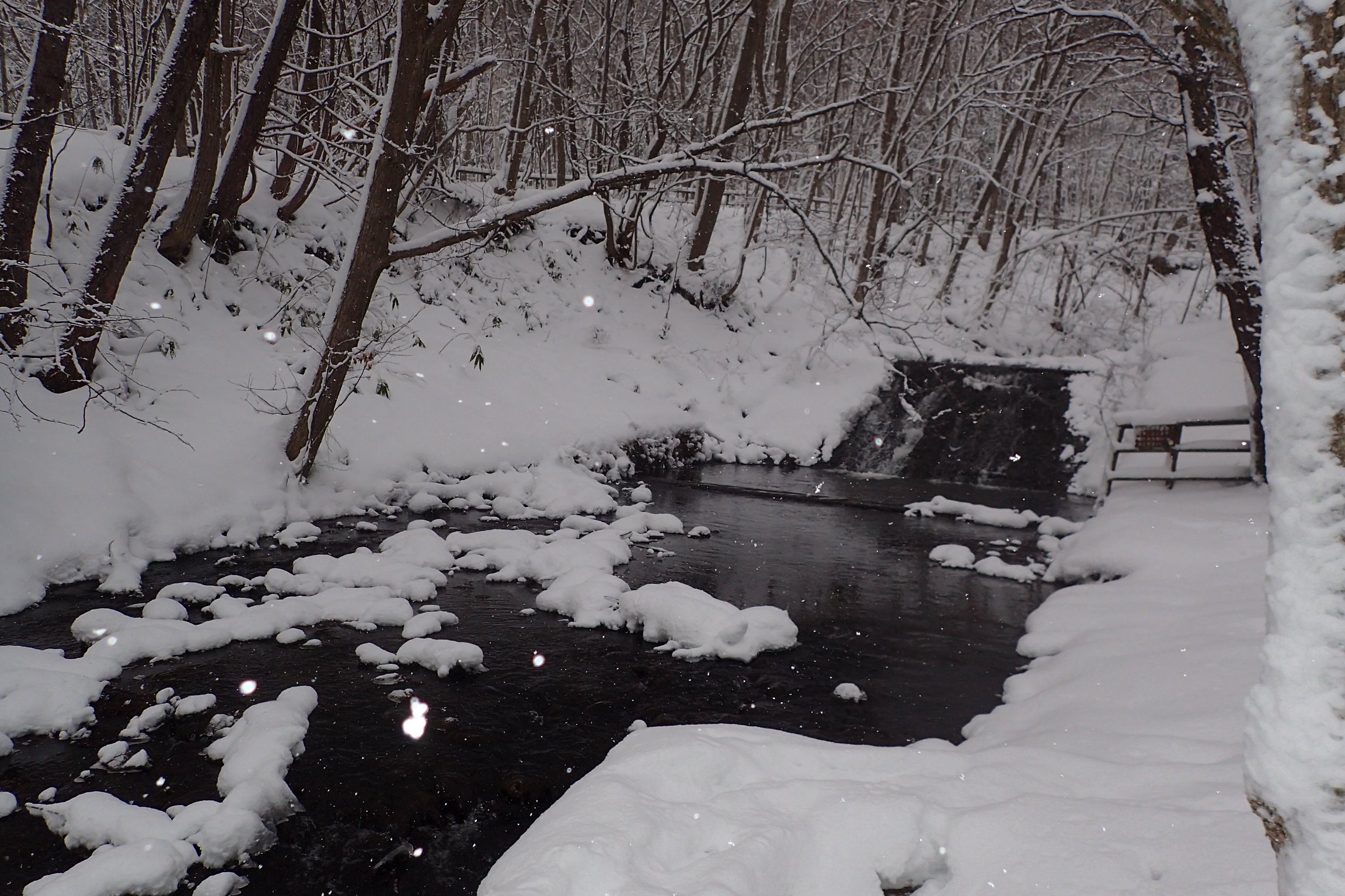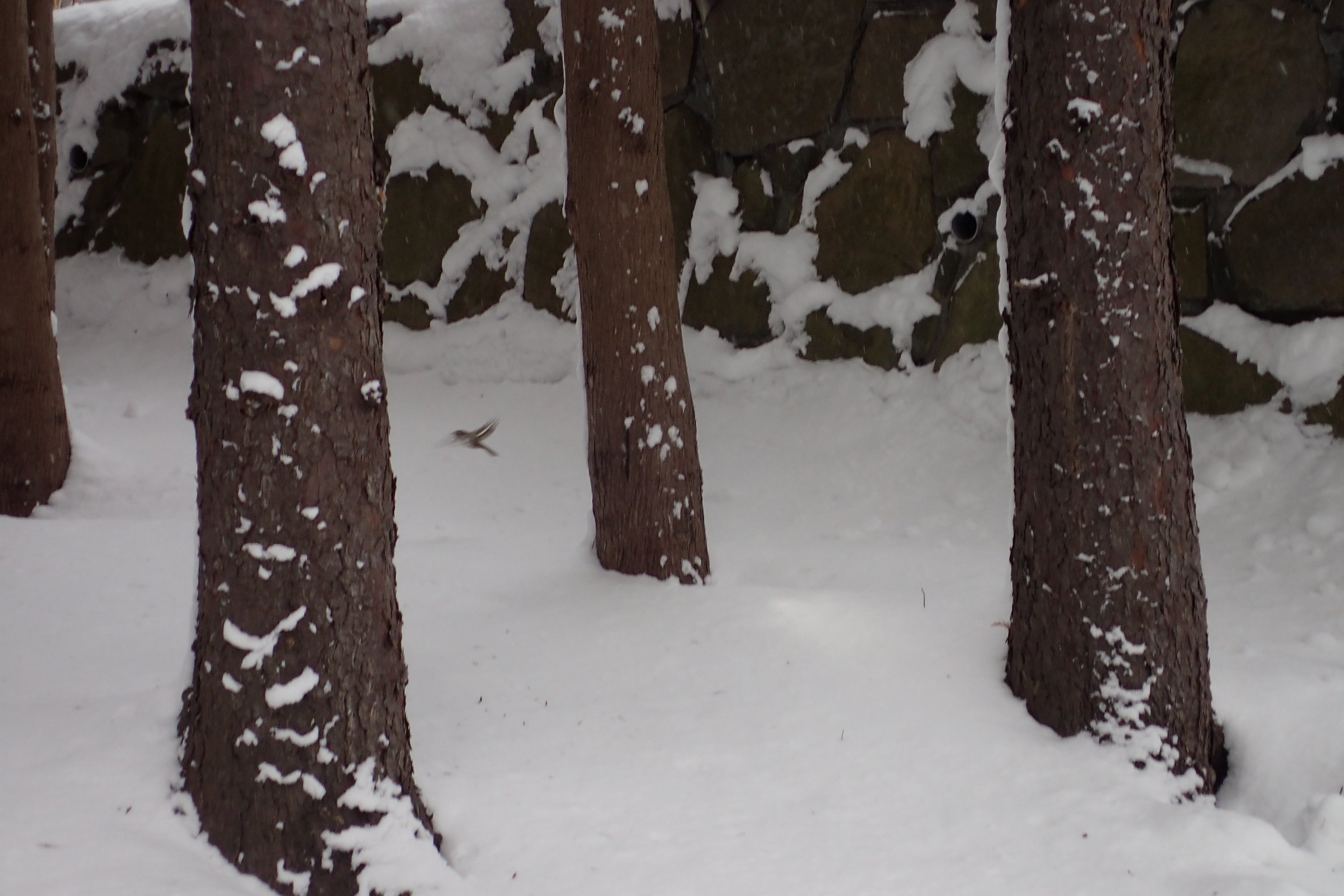 降ってきた雪が、日の光でキラキラ光って見えていました。