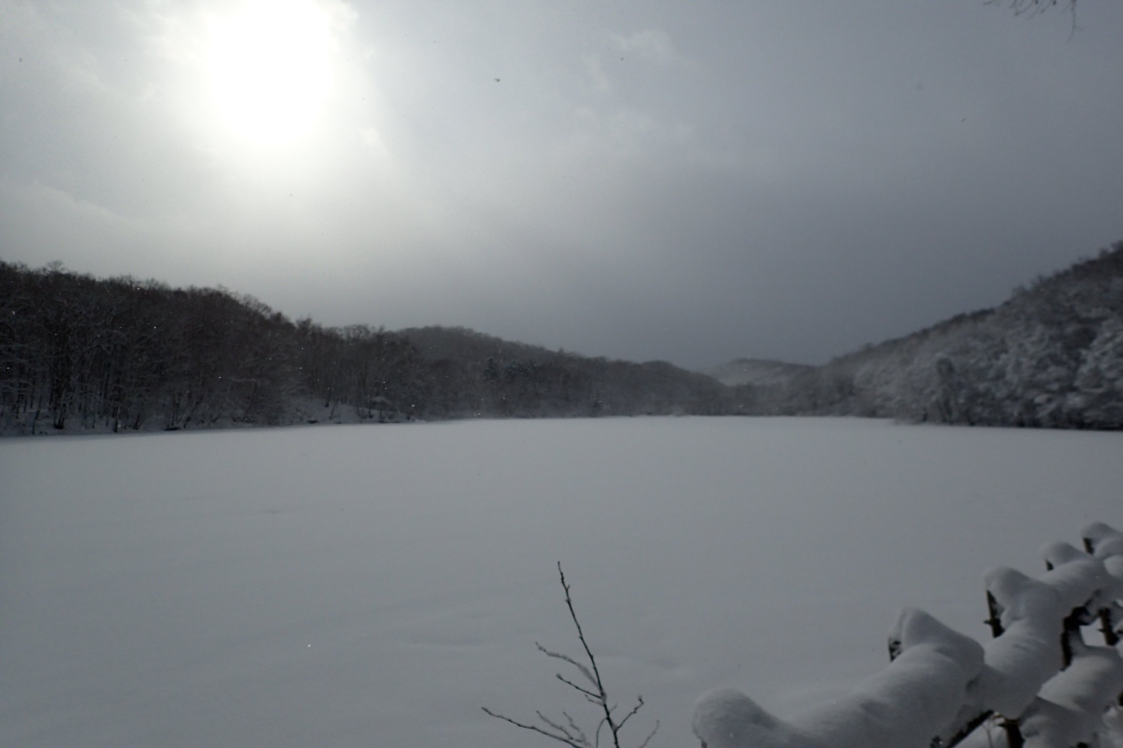 曇り空からぼんやりと太陽が。
