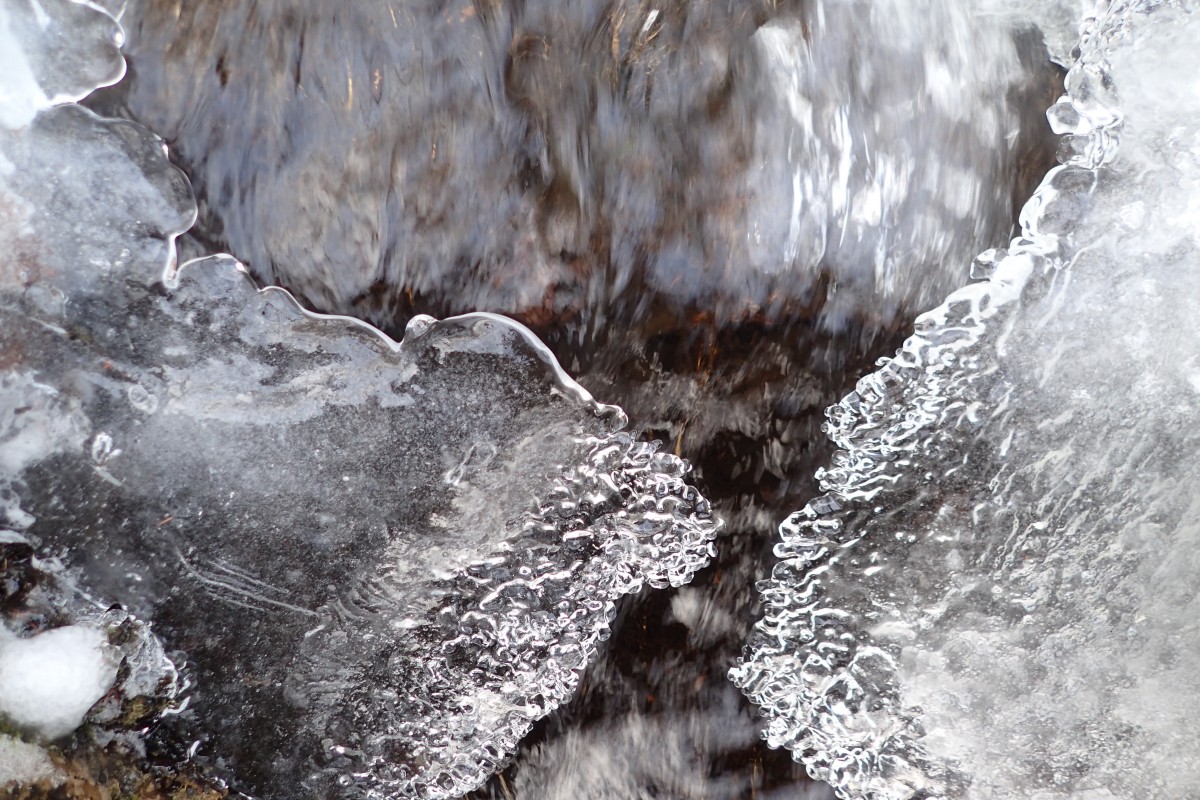 ヒント:左下に苔が見えますね。そして左右から川面の薄氷が迫るくらい幅の狭い場所です。