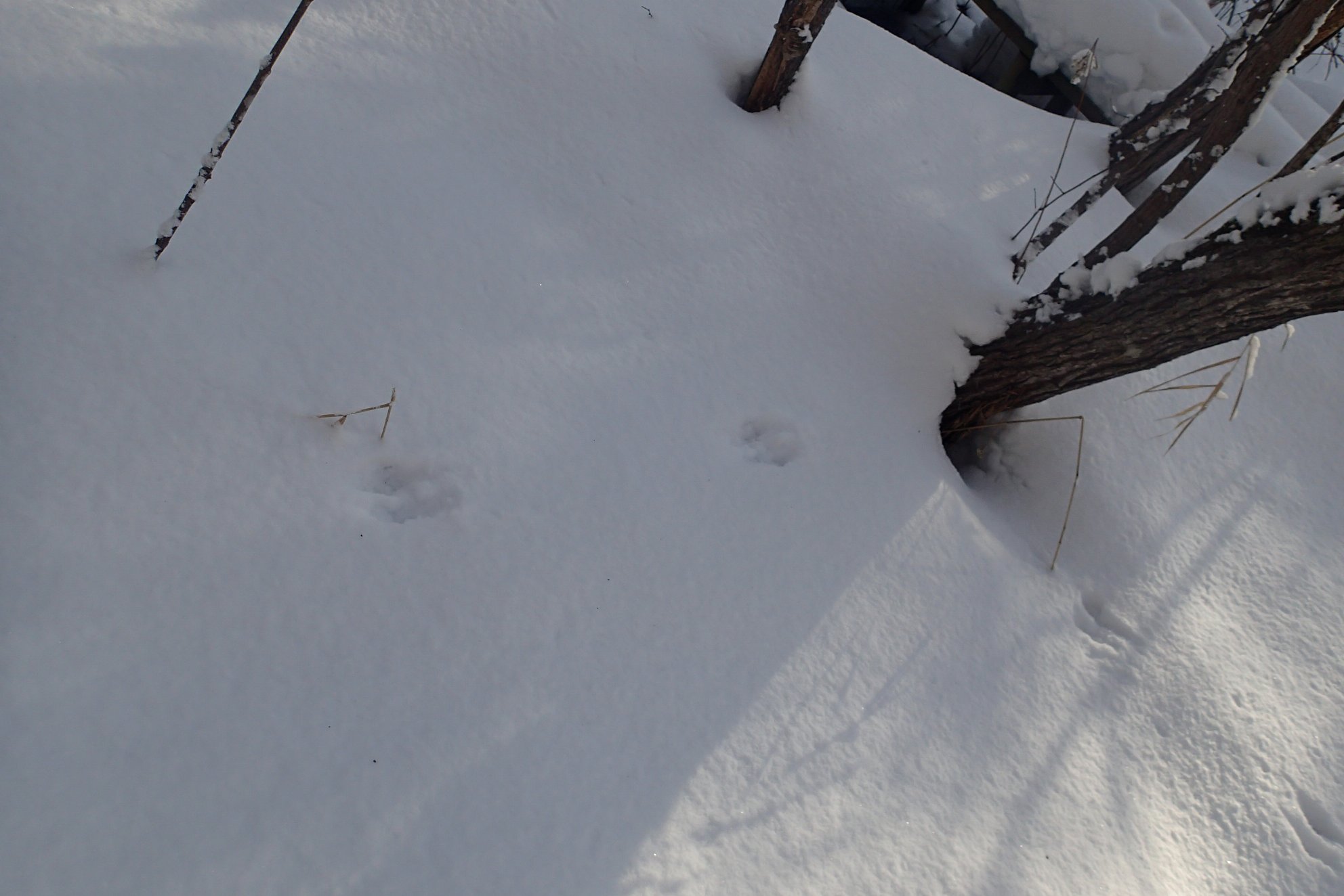両足そろえて並んで足跡がつきます。木のそばで、途切れていたのは木登りでもしたのでしょうか?