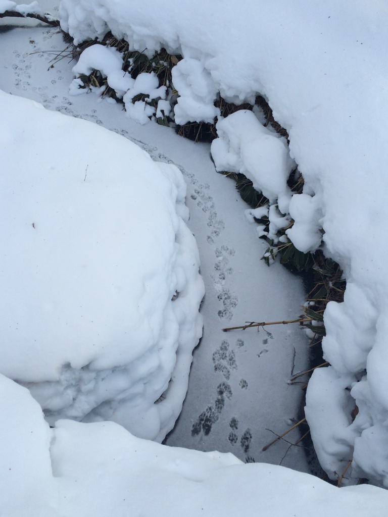 そんな川の上をトコトコと歩く、沢山の足あと・・・・・。