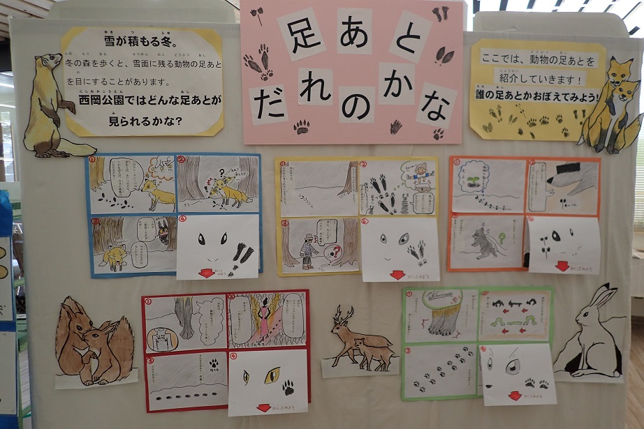 札幌に生息する動物たちの足あとを推理する4コマ漫画の楽しい展示です!