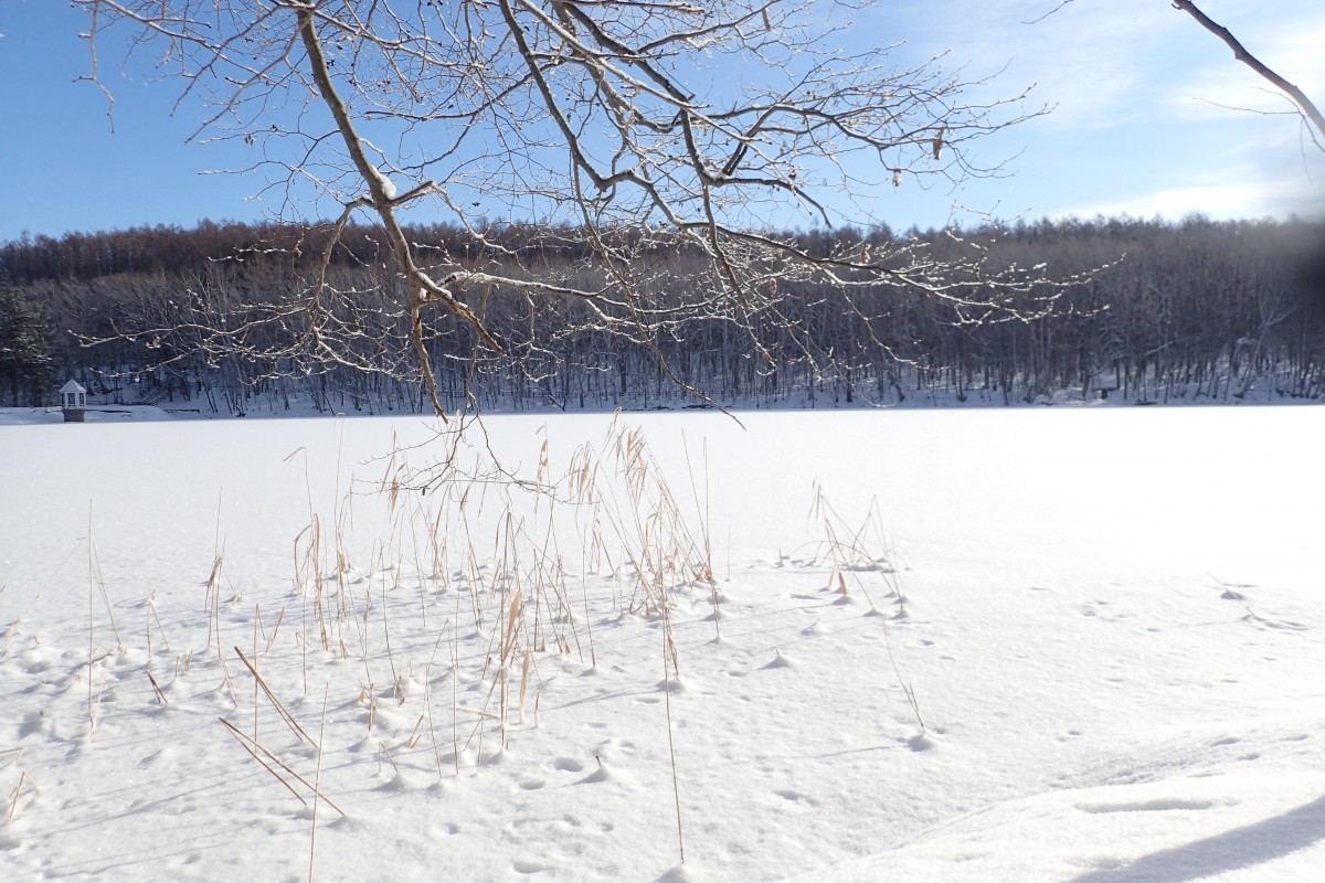 公園内の木道は雪が積もり、足を踏み外しやすい箇所があります。
