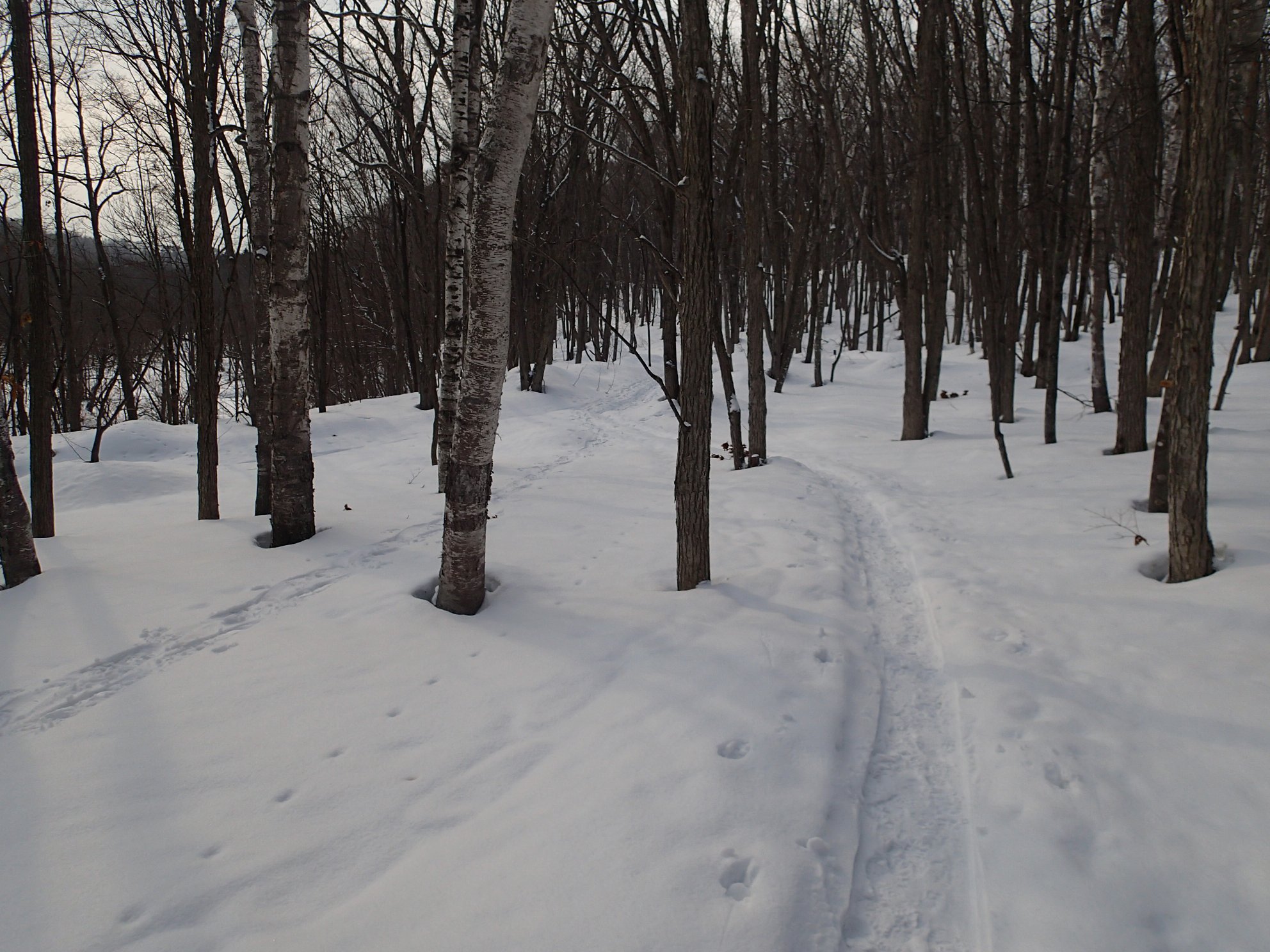 築堤は、雪解けが進んでいて、地面が顔を出していました。