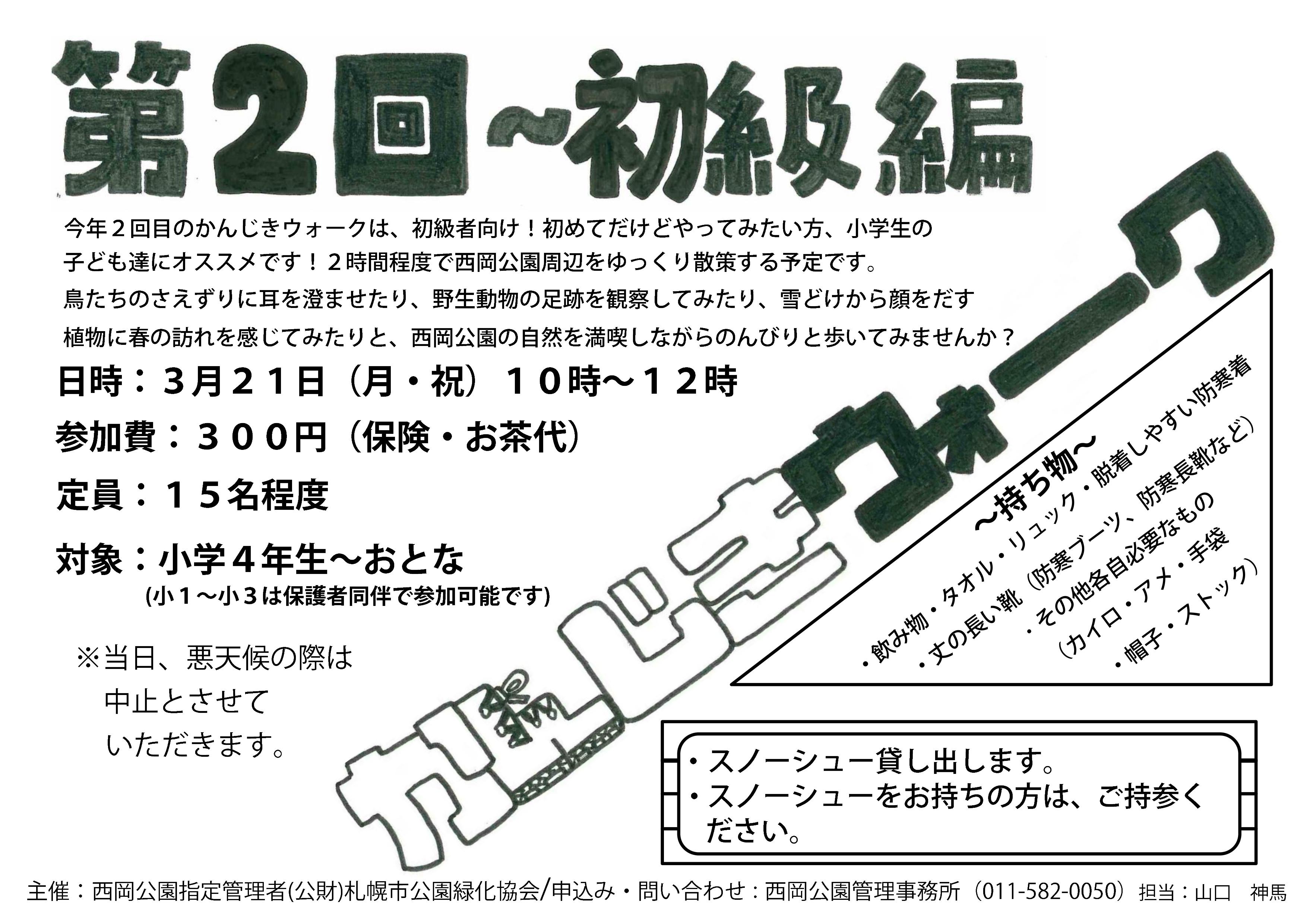 来月はかんじきウォーク初級編と題しまして、西岡公園の園内を散策します。