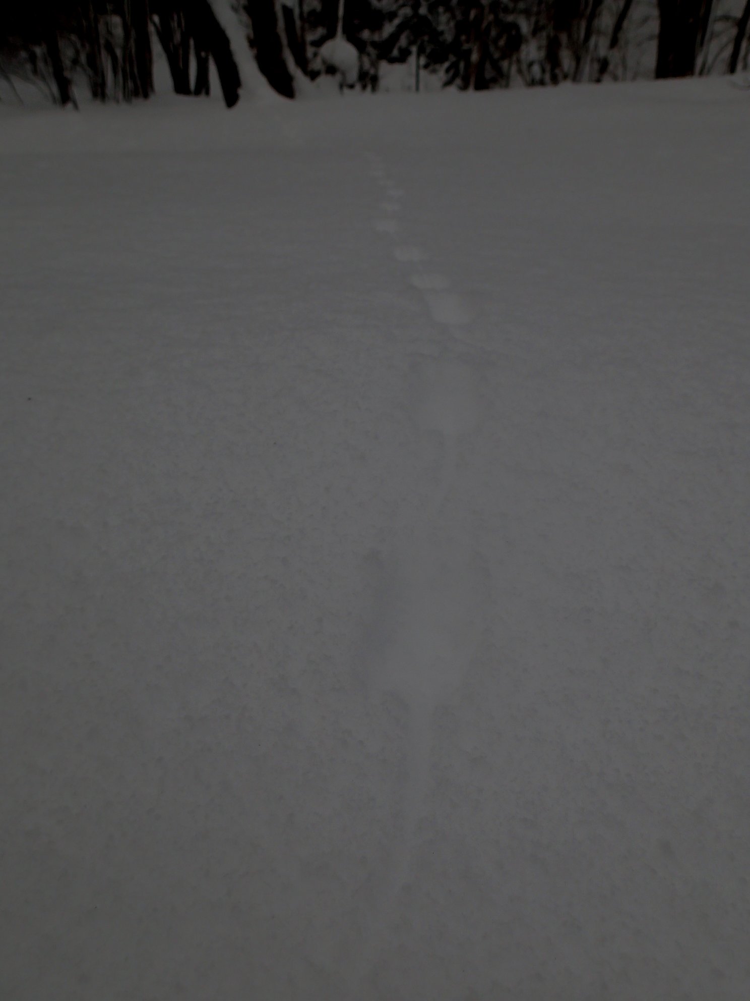 林道では、エゾリスも活発に活動していたようで、こちらも足跡がたくさんついていました