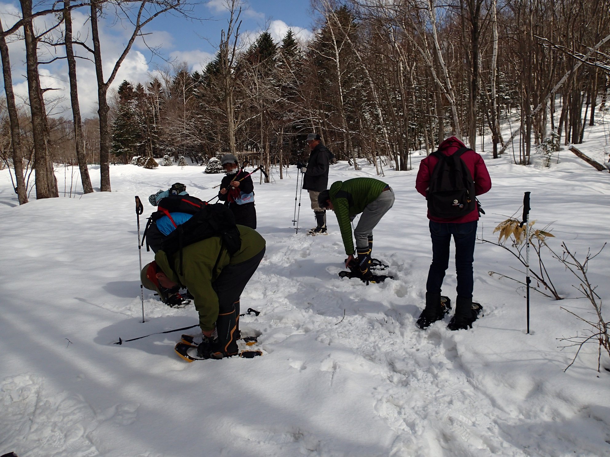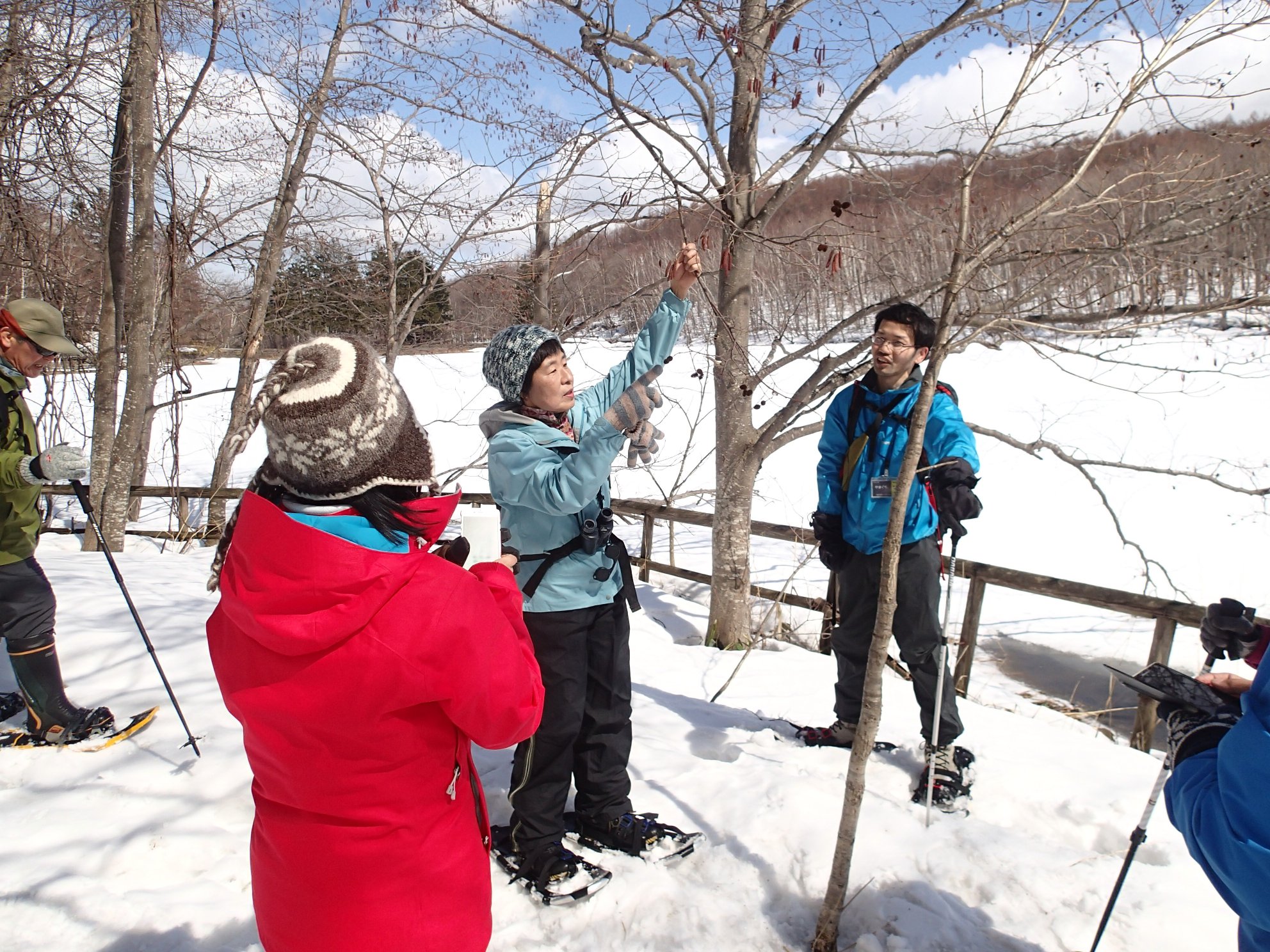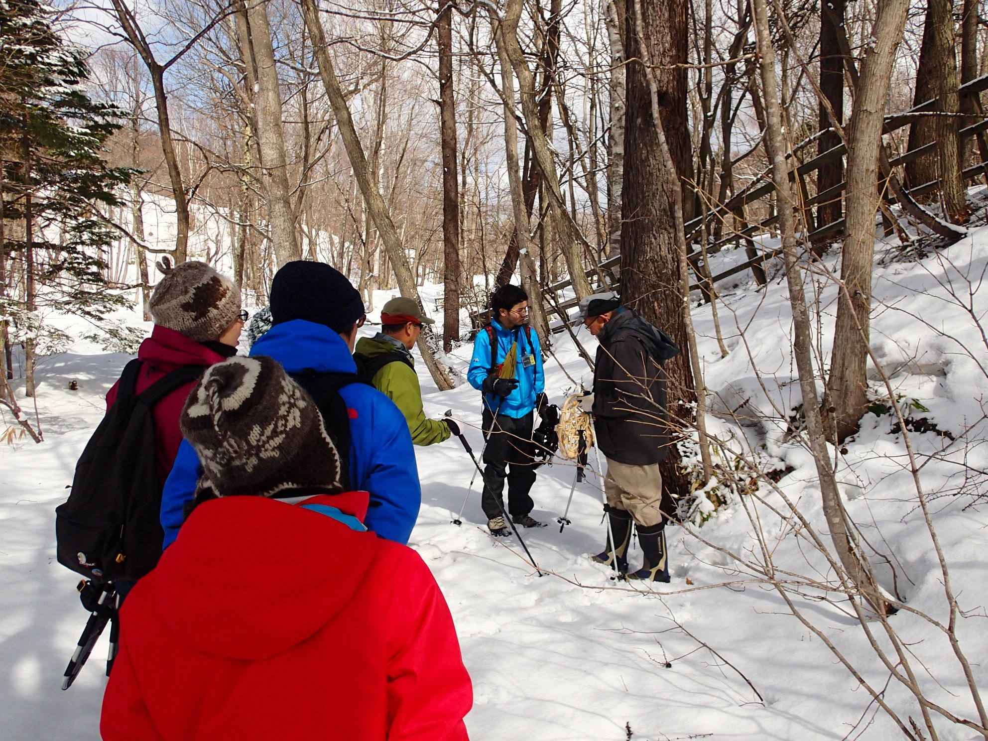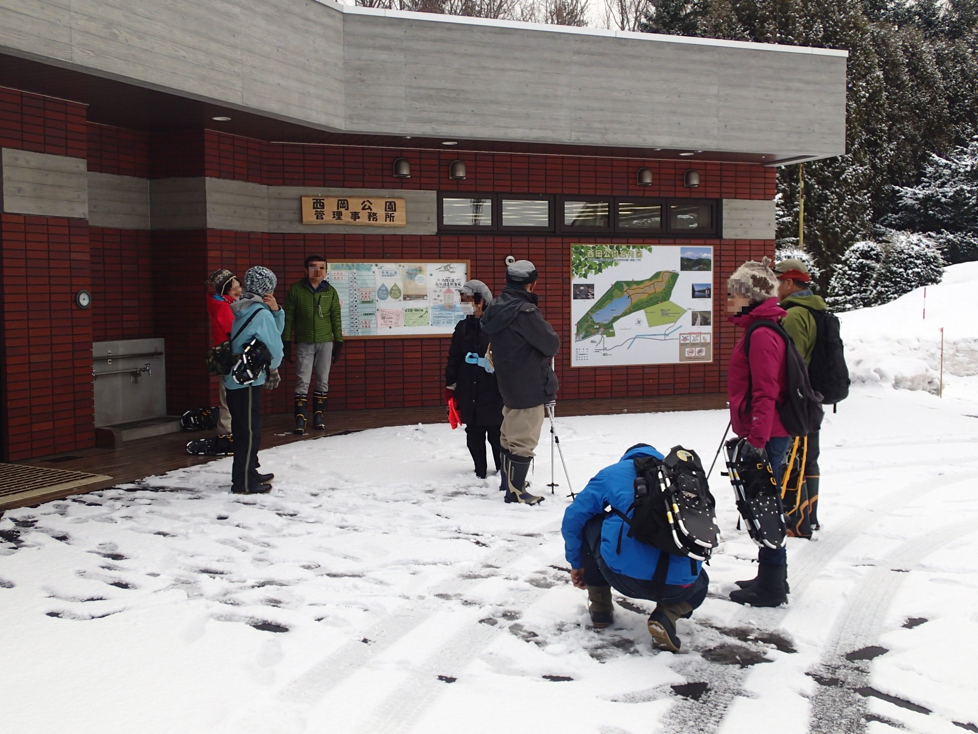 夏場のガイドウォークの様なまったりした雰囲気で園内を散策し、かんじきウォークは無事に終了しました。