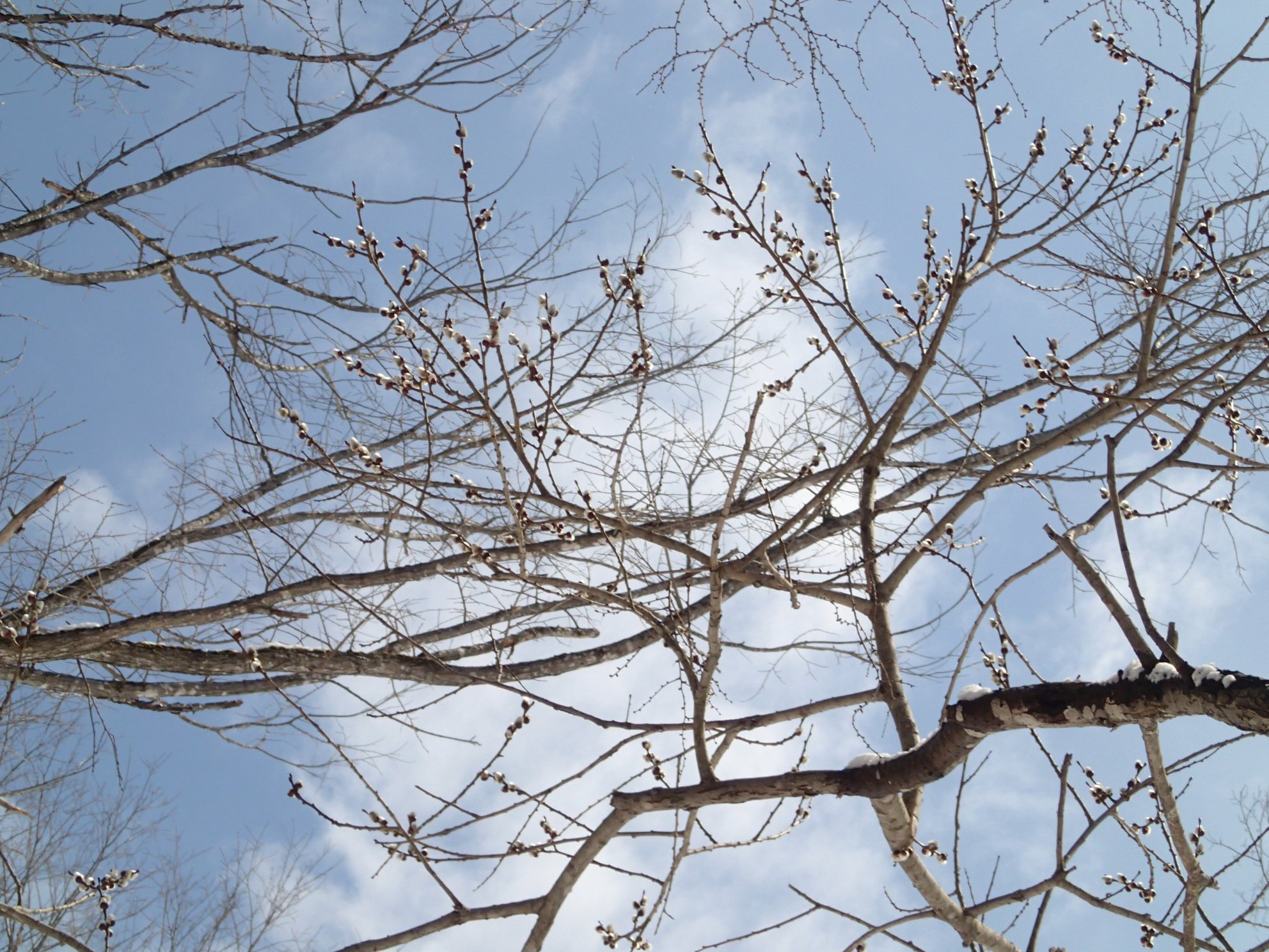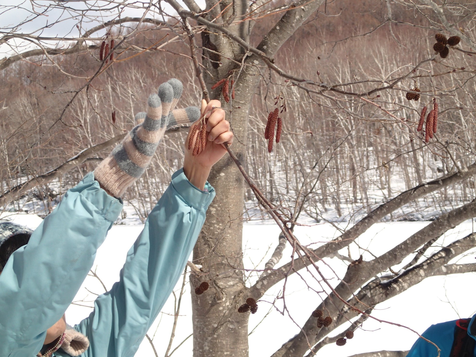 花粉を飛ばす間近のケヤマハンノキを観察して楽しみました。