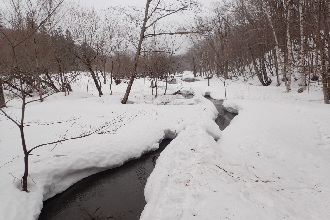 暖かくなり雪解けが進んでいますが、 融雪時の木道は、大変滑りやすくなっております。 特に東側の木道下は水路が深く、大変危険な状態になっていることから、 3月25日(金)より、 木道の一部(60cm幅の木道)を通行止めにさせていただきます。