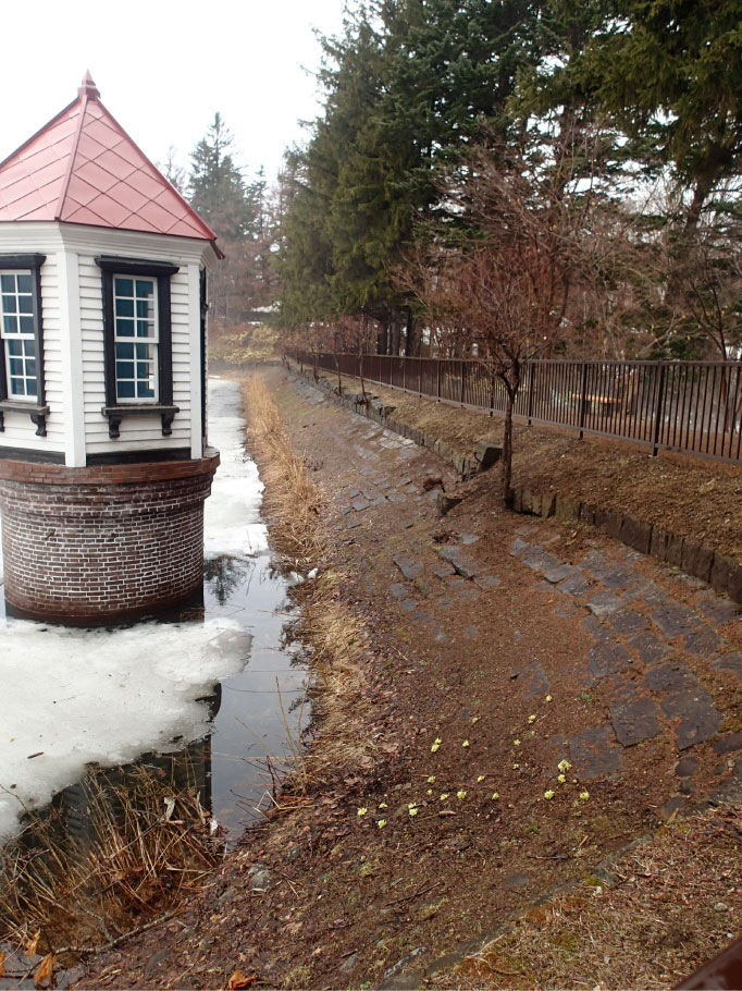 今日の西岡公園ではミズバショウとフキノトウが芽吹き始めていました。
