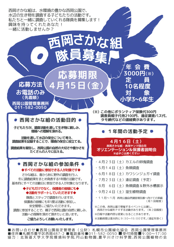西岡さかな組では、今年度の新隊員(対象:小学3年~6年)を募集します。