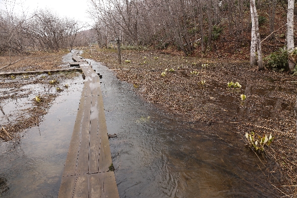 東側木道T字路の辺りは毎年多くのミズバショウが見られます。