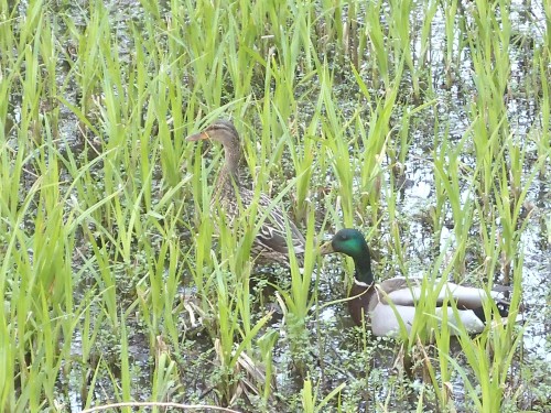 途中、間近に鴨のつがいがいました。仲良く餌探し。