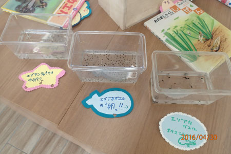 展示室のエゾアカガエルの卵が孵化し始めました!
