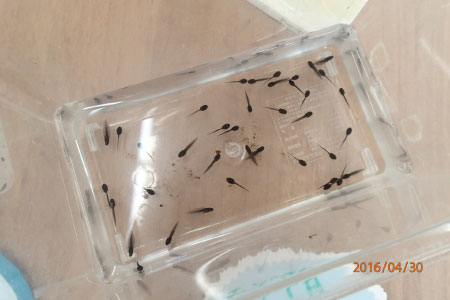 まだ1/4ほどですが、泳ぎ始めているおたまじゃくしを見ることが出来ます。