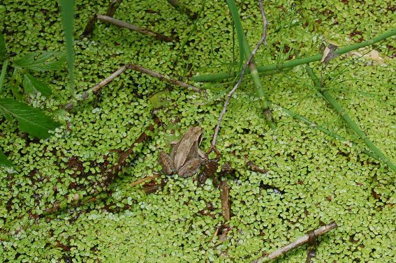 暑い日には、普段は隠れているカエルたちも、ひなたぼっこに 出てきます。 私のおすすめスポットは、木道にある通称「ルリルリの池」です。 倒れた木の上に、エゾアカガエルが出てきていました。 隣の木には、小さなツチガエルとエゾアカガエルが計4匹も並んでいましたよ。 地味な色なので、見つけづらいですが、よ~く見ると見つかりますよ!