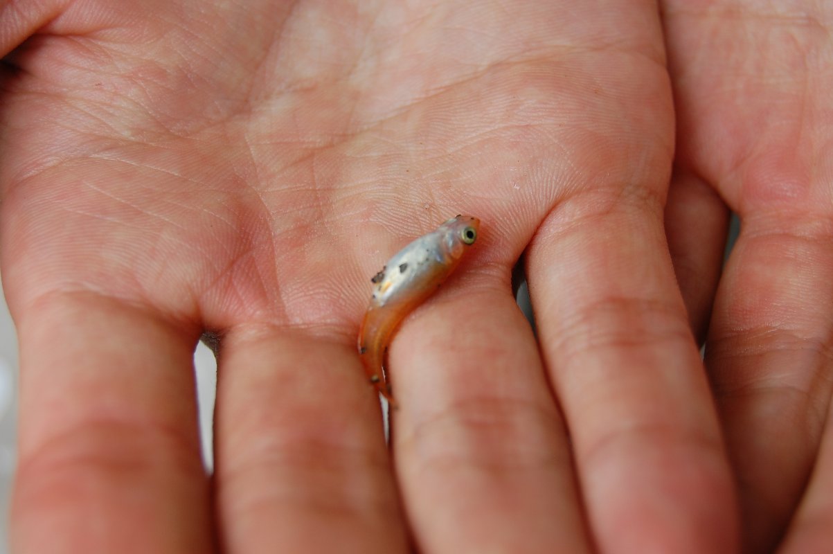 メダカの姿が・・・・・・・。だれかが池に放したようです。