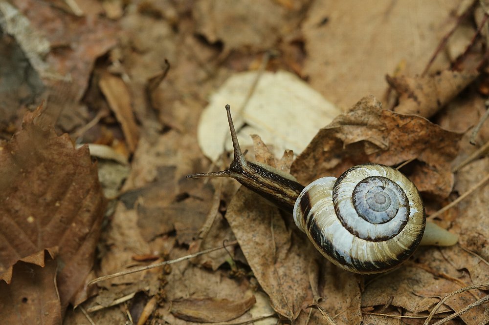 昆虫ではないかたつむり、サッポロマイマイ、日陰で活動中でした。