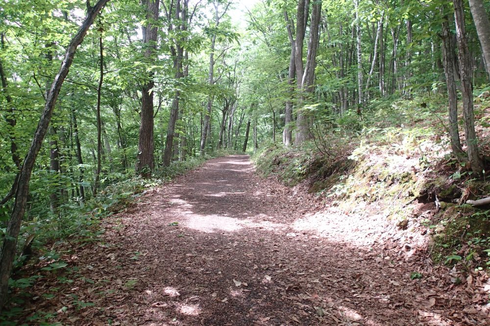 木漏れ日の西側散策路を抜けて上流を目指します。