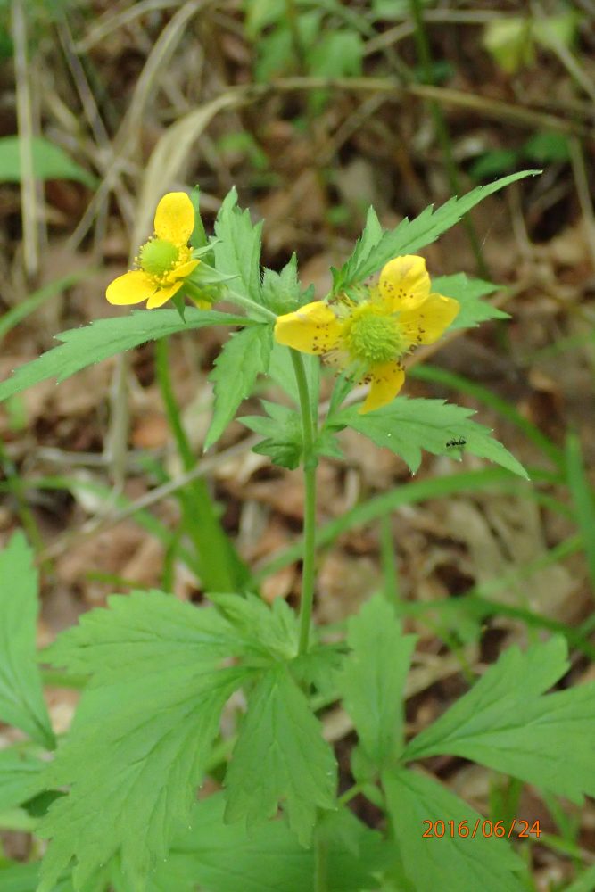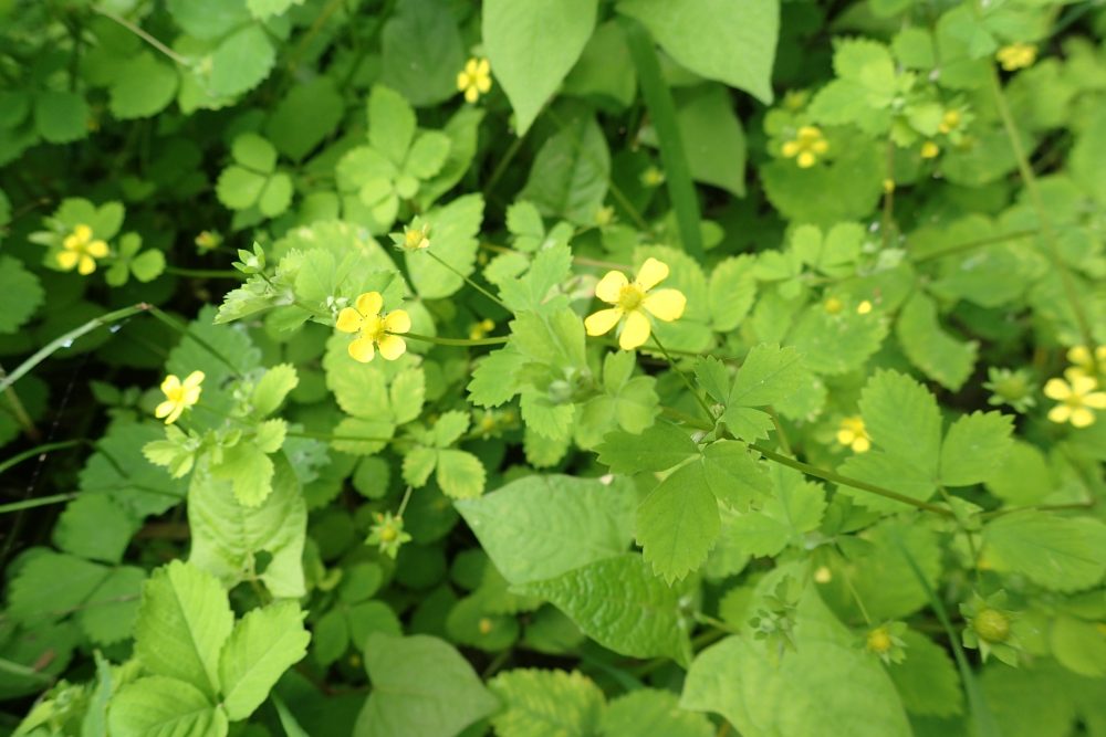 『ヒメヘビイチゴ』 ↓ は木道沿いで見かけます。