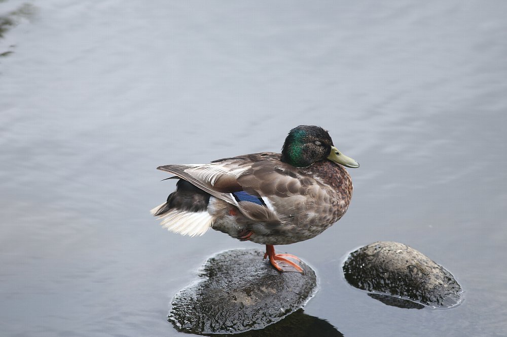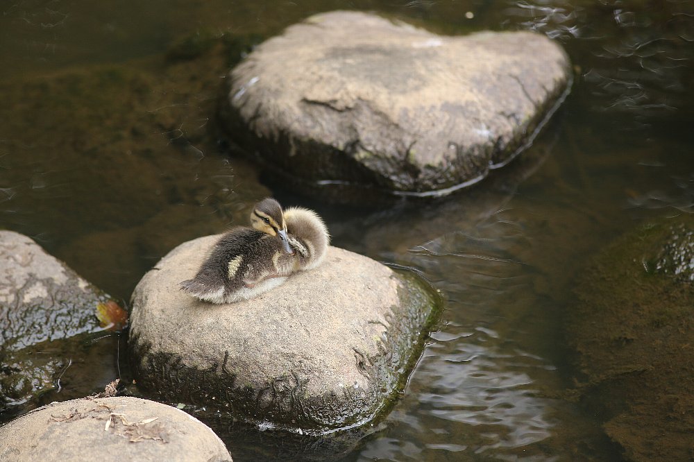 今の時期、マガモの幼鳥が取水塔横で見られます。