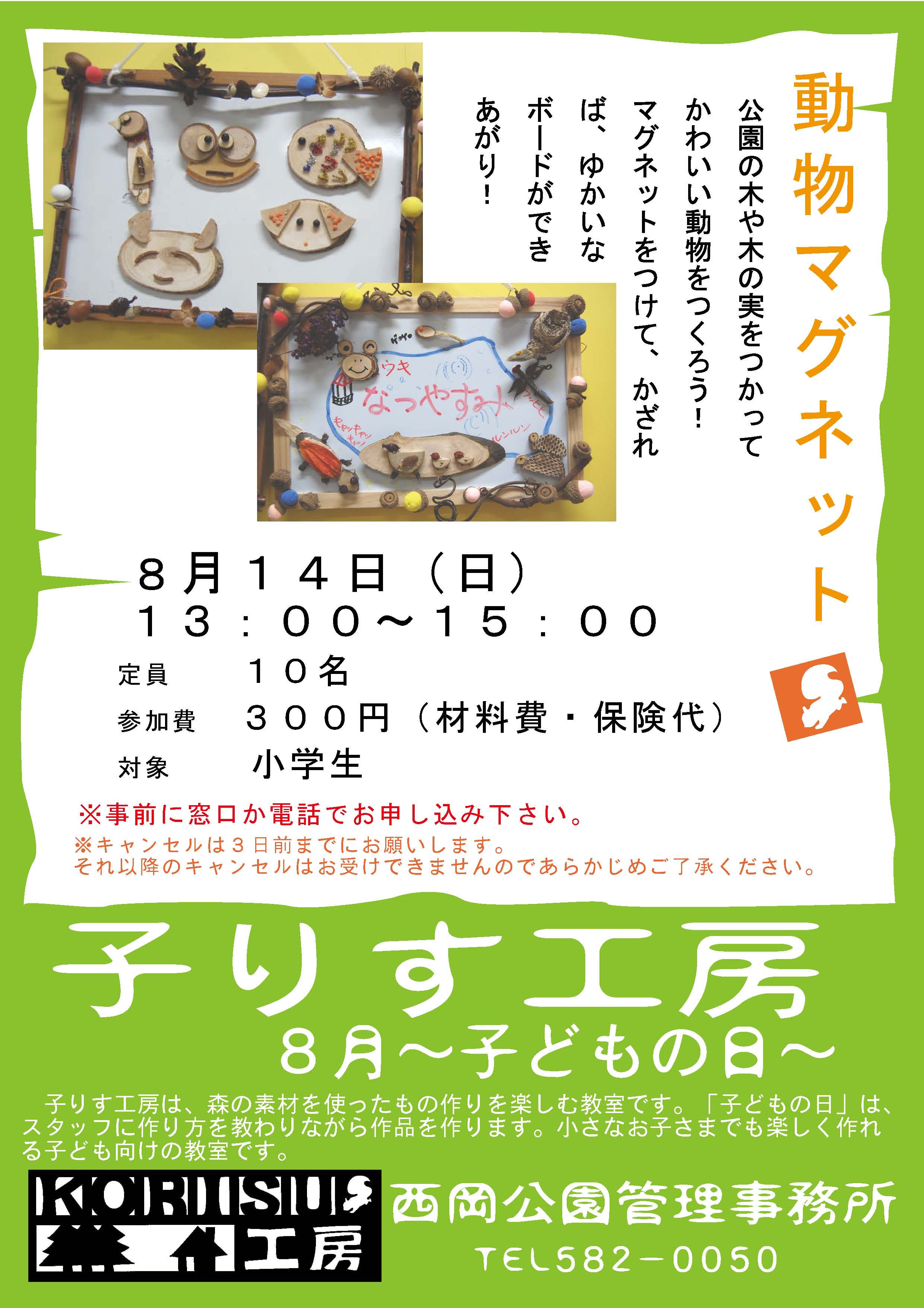 8月の子りす工房~こどもの日は、木っぱでかわいい動物を作ります。