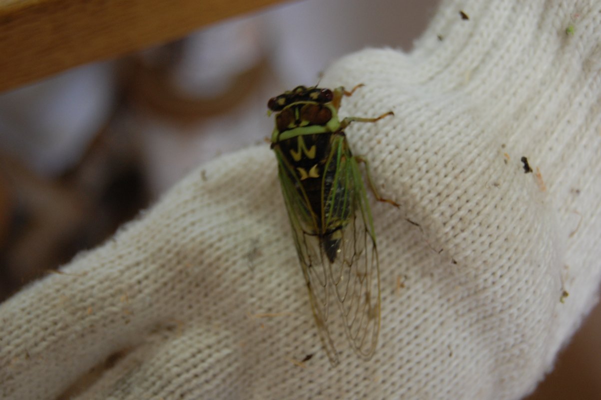 写真は、コエゾゼミです。胸の模様で、エゾゼミと見分けることが できます。西岡公園では、コエゾゼミがほとんどのようです。 今日も、外では賑やかな声がたくさん聞こえましたよ。