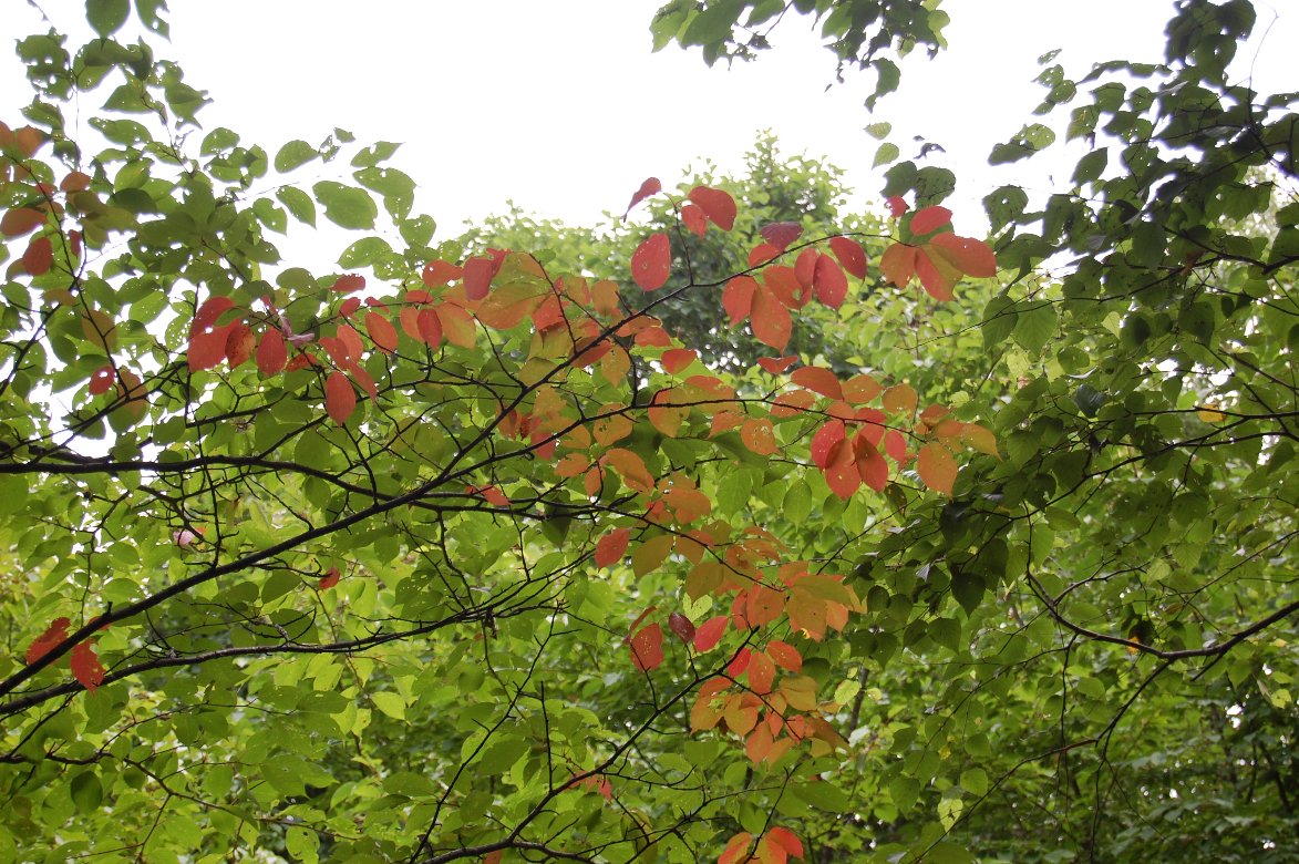 自由広場に植えられているエゾヤマザクラの葉が、きれいに赤く染まっていました。 なんだか秋を呼んでいるようですね。 植物も、ヤブハギやキンミズヒキなどが咲き始めています。 あと一ヶ月もしたら、すっかり秋景色ですね。