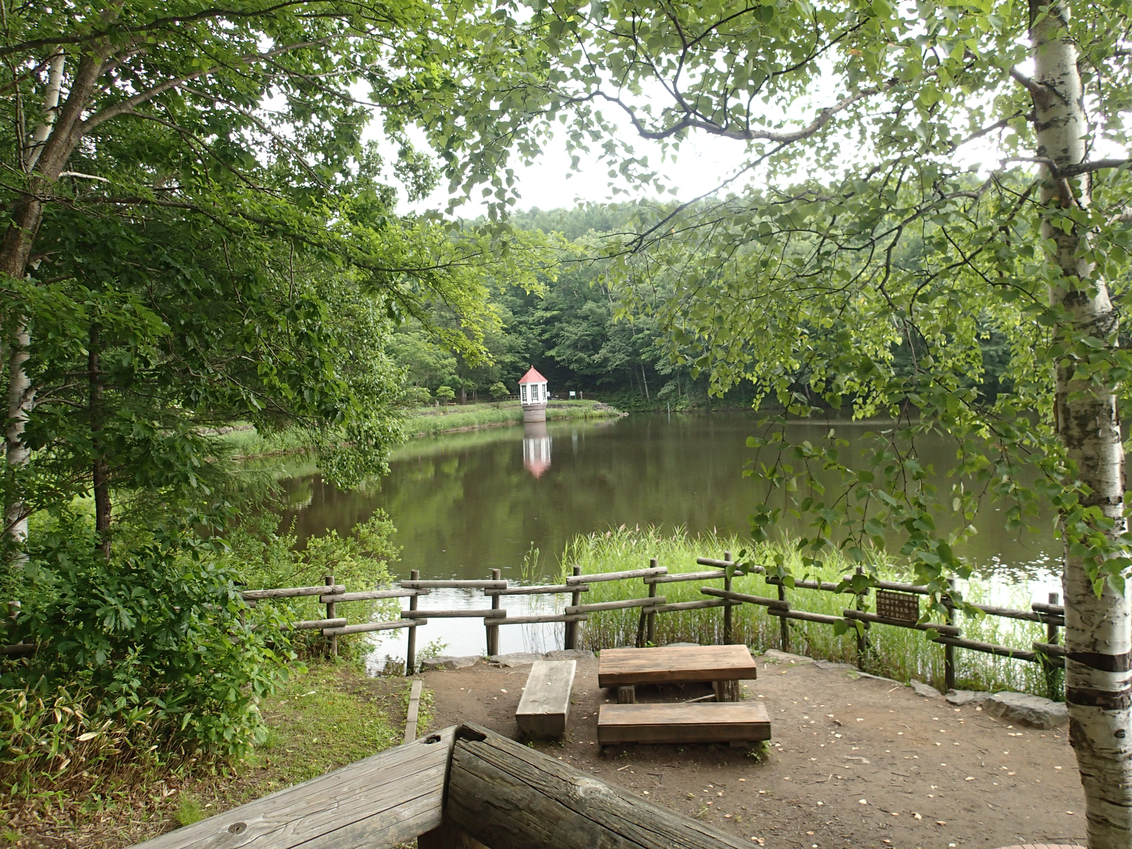 今の時期ですと、木道展望台からの見通しも悪くなって、取水塔はわずかに見える程度です。