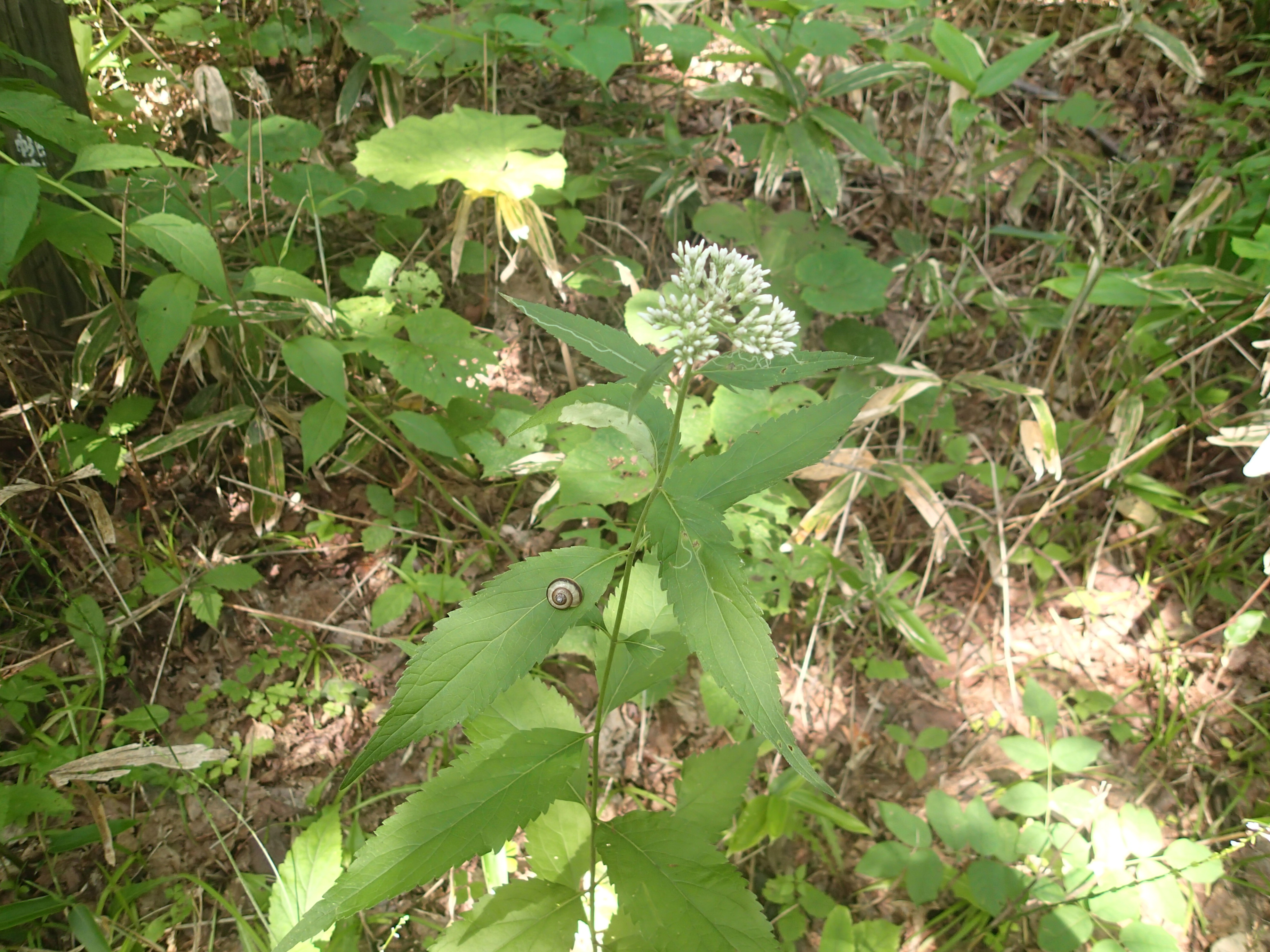 ヒヨドリバナにくっついているのはエゾマイマイのようです。