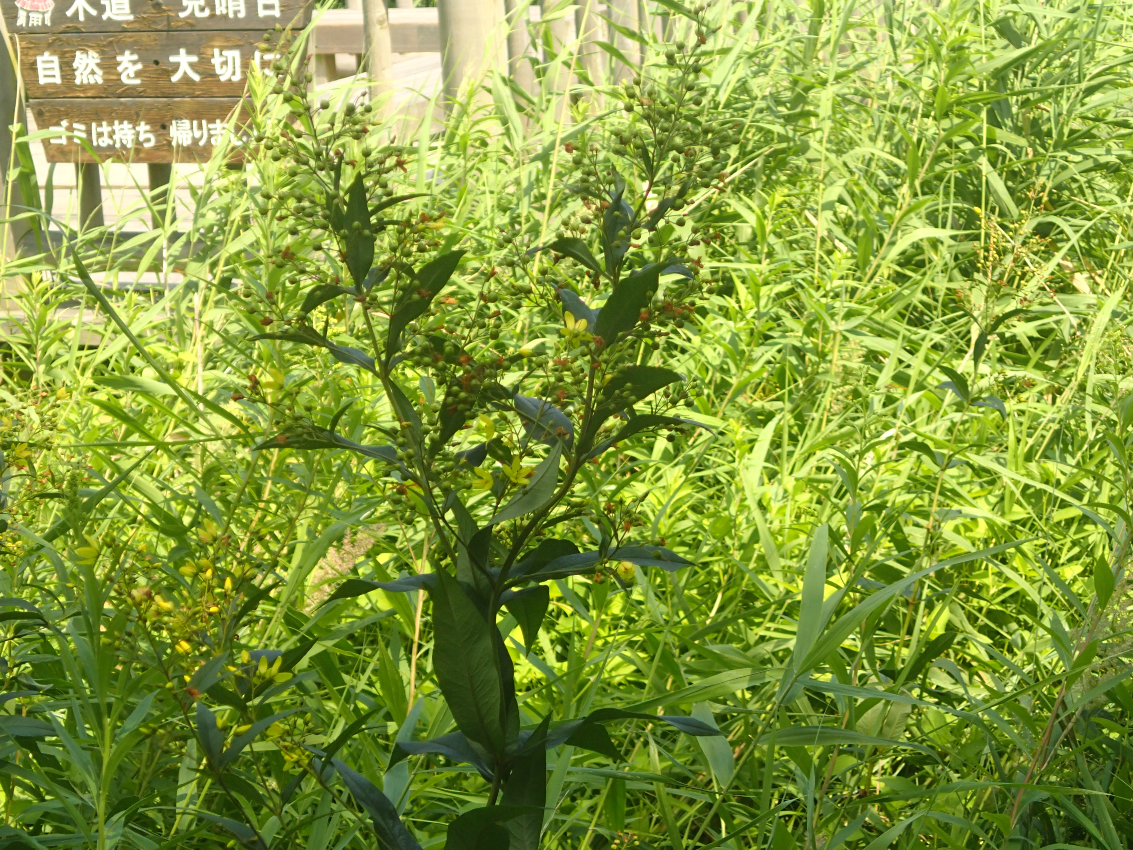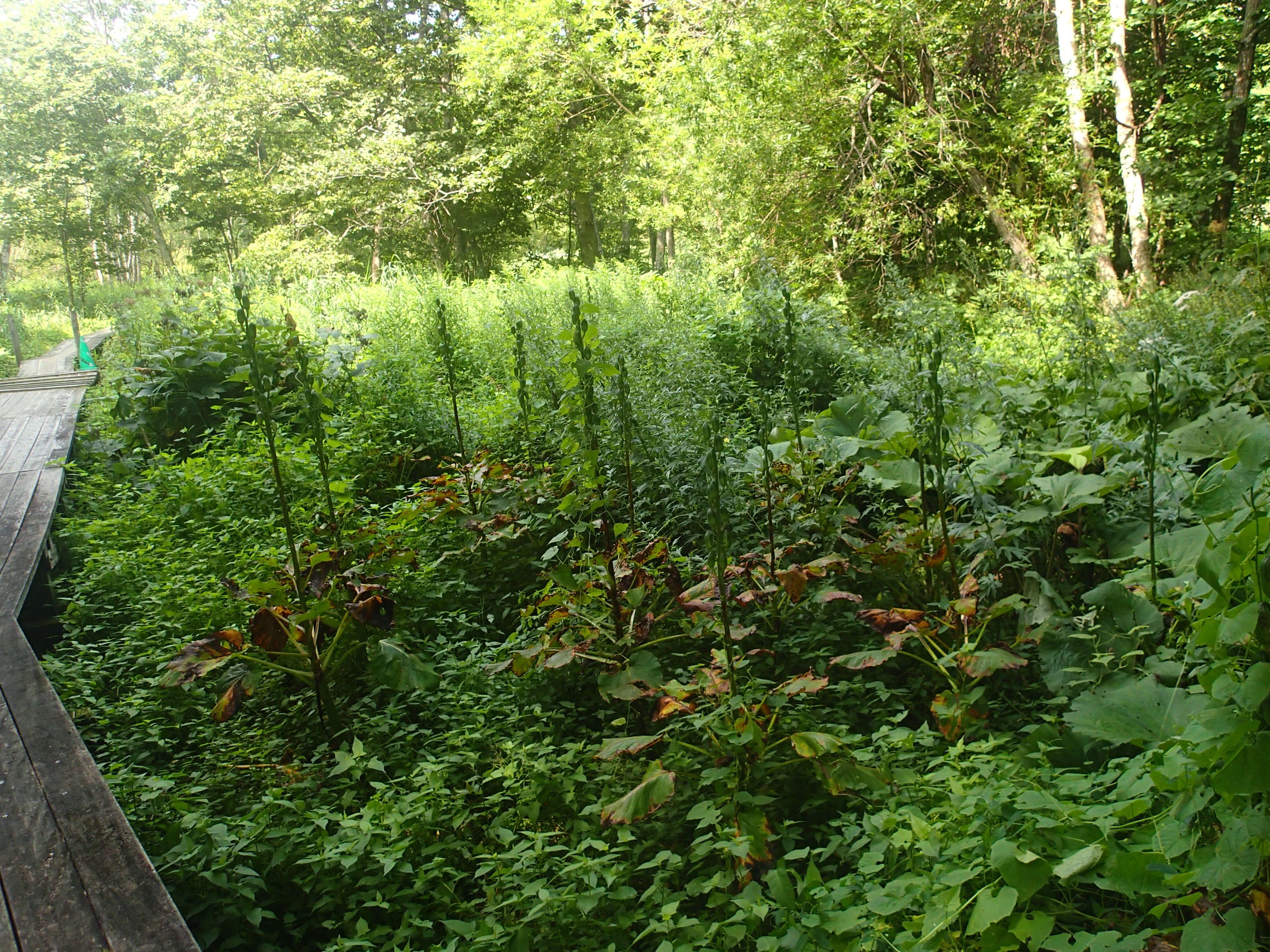 木道の脇には、クサフジ、アカバナ、クサレダマ、オオアワダチソウ、ハッカなどが咲いています。