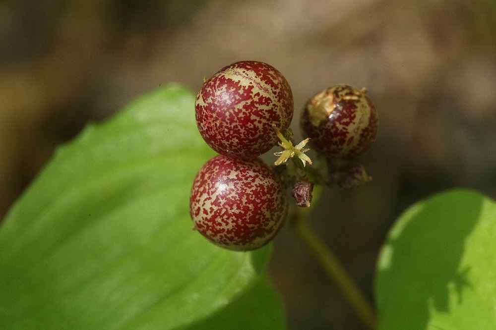 マイヅルソウの実もだいぶ赤くなってきました。