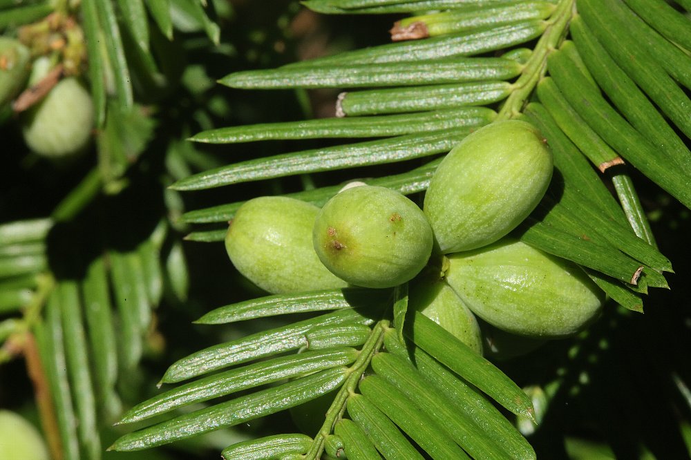 ハイイヌガヤの実が夏日の太陽を浴びていました。
