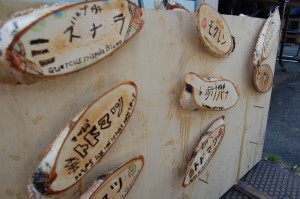 公園で倒れた木などをリサイクルして、字を焼いて作っています。