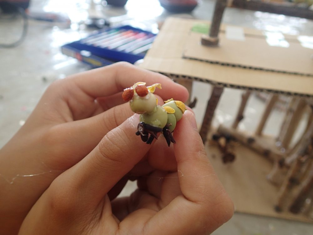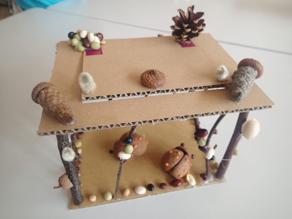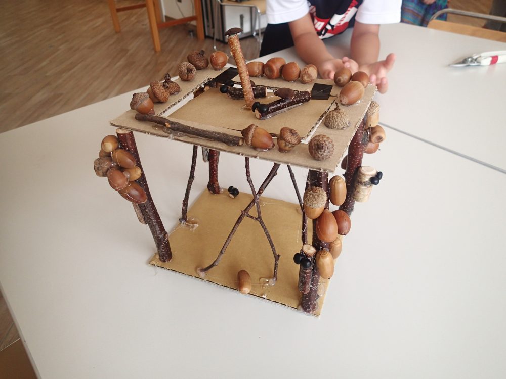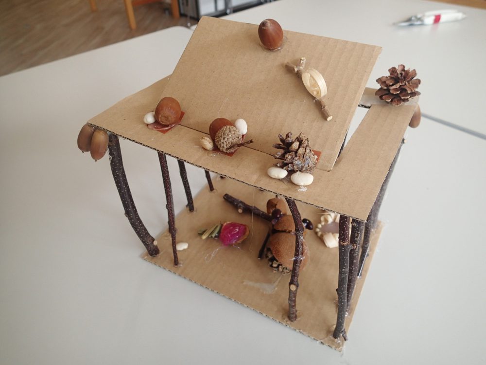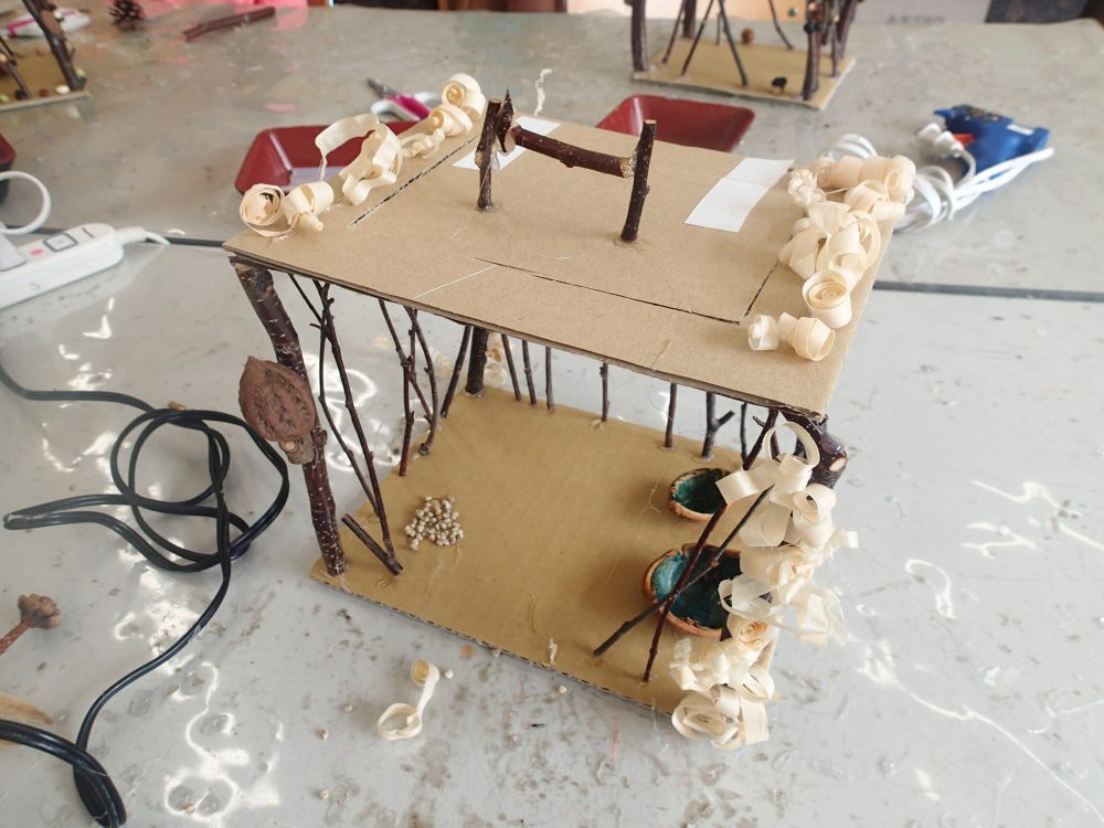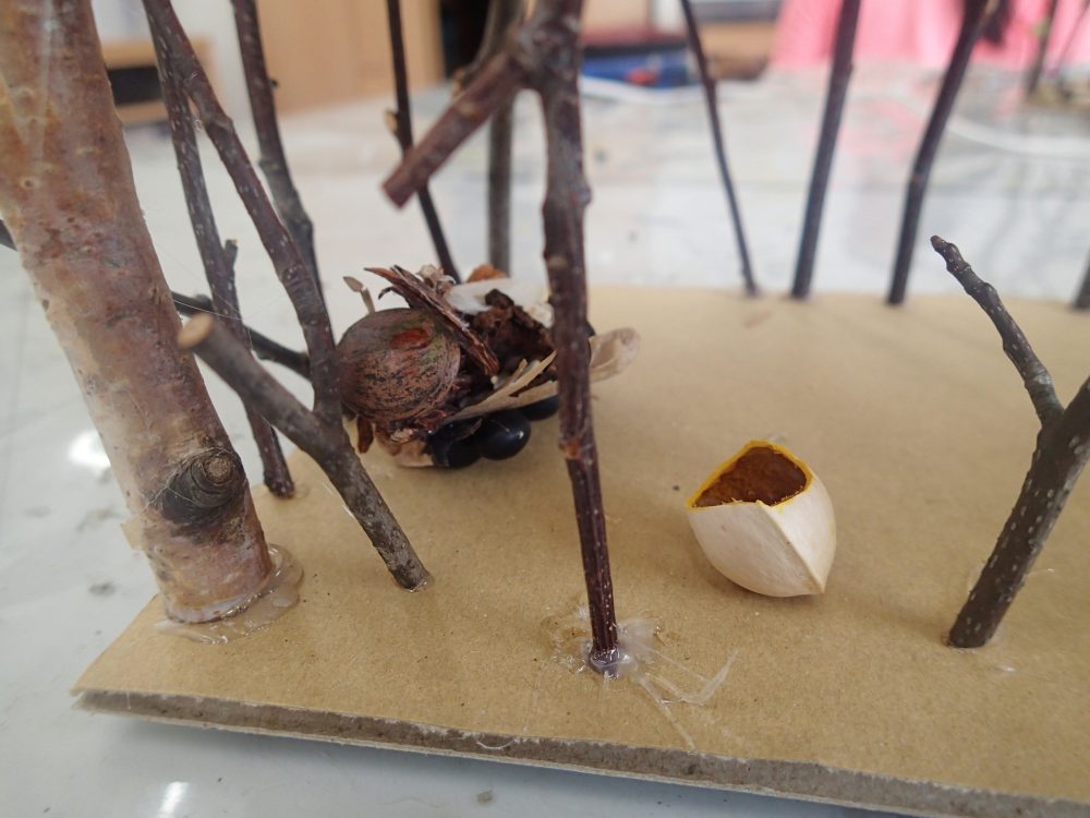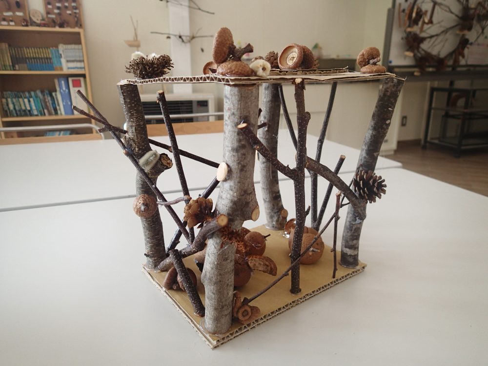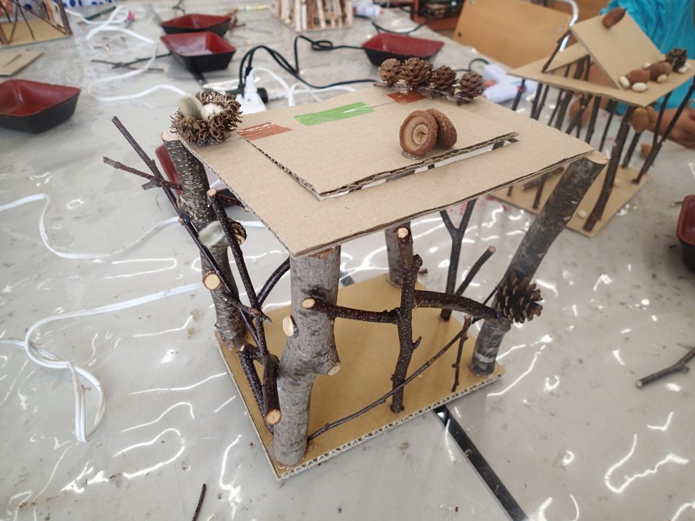 こちらは木を削った残りをうまく飾り付け、中には昆虫のエサを用意したそうです。