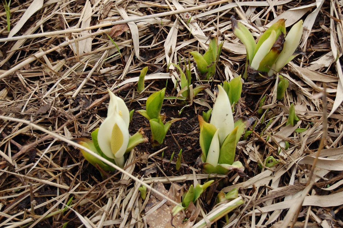 公園から少し歩いたところでは、もうミズバショウがきれいに咲いていました。こちらは、今が見頃のようです。