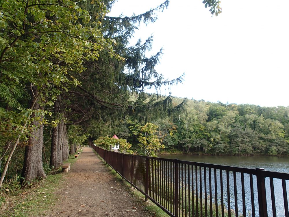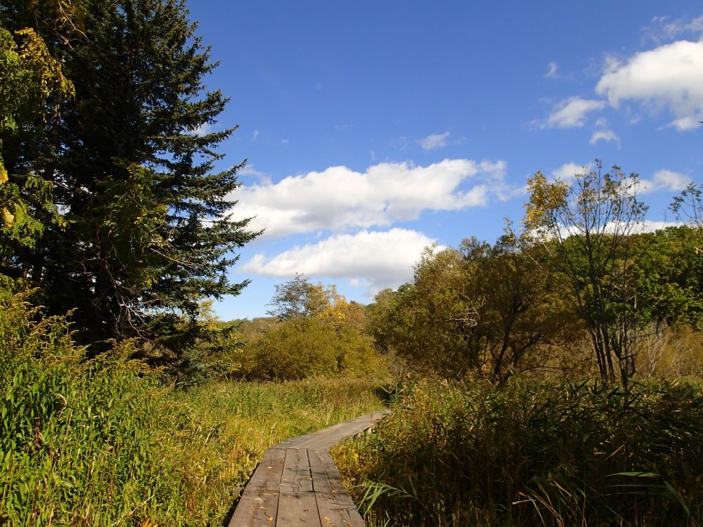 散策路の木々は濃い青々とした緑色ではなく、所々黄色く、紅葉が進んでいるようです。